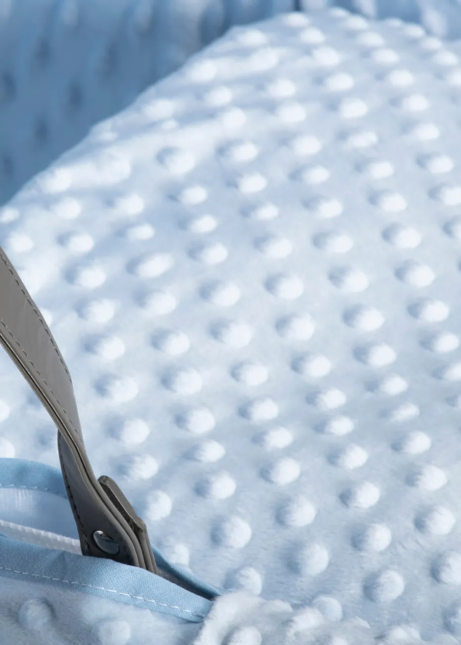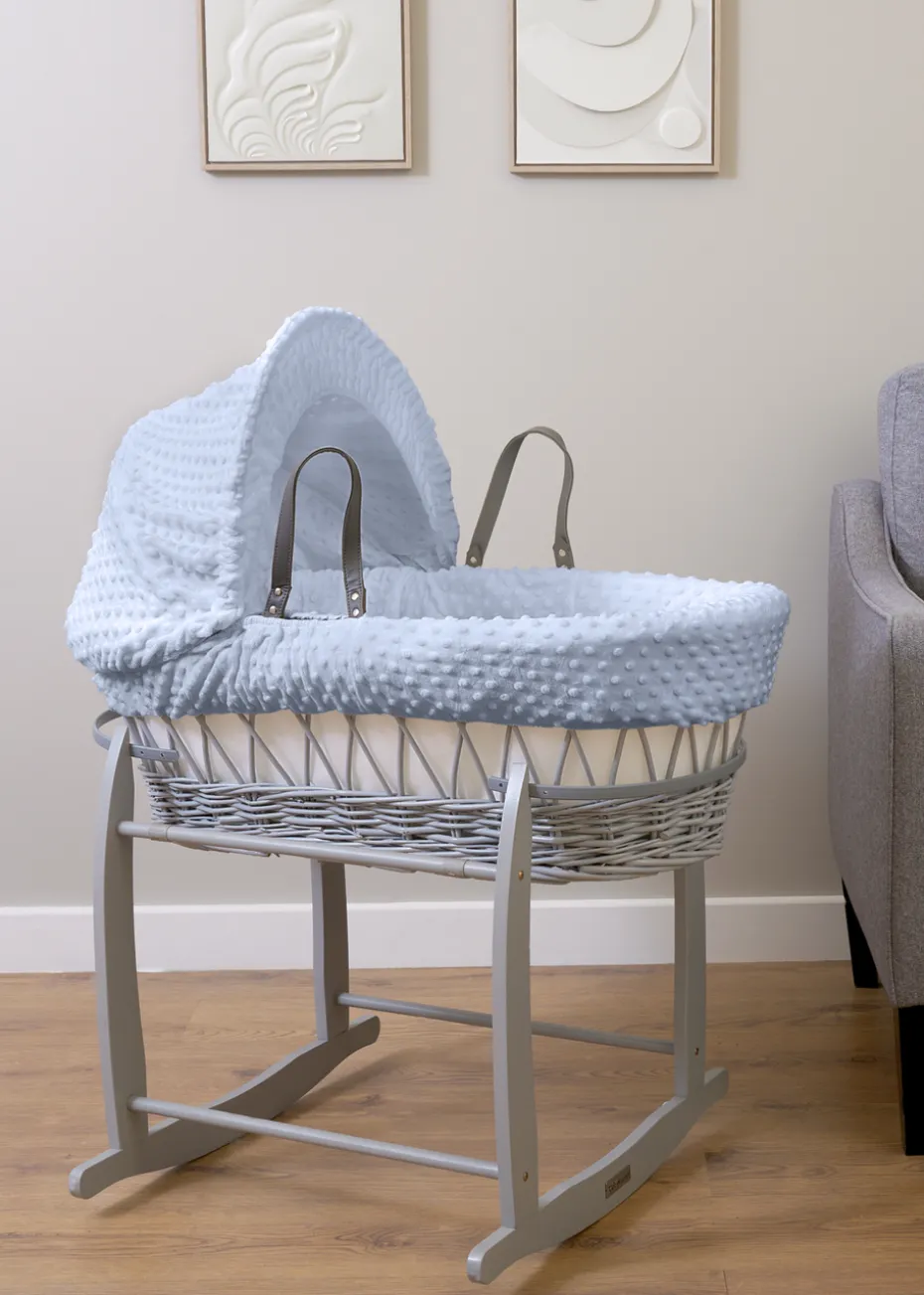Clair de Lune Blue Dimple Wicker Moses Basket With Deluxe Rocking Stand