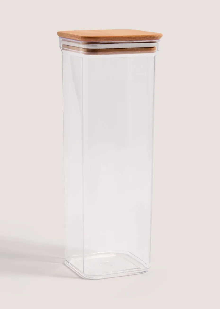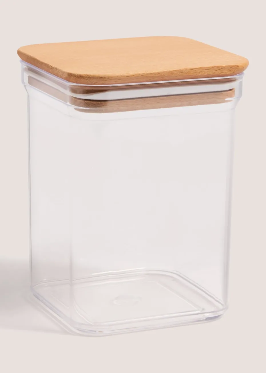 Keep your food fresh for longer with the help of this handy storage design. Fashioned with clear plastic so you can easily see the contents, it comes complete with a wooden lid to help prevent your food from going stale.