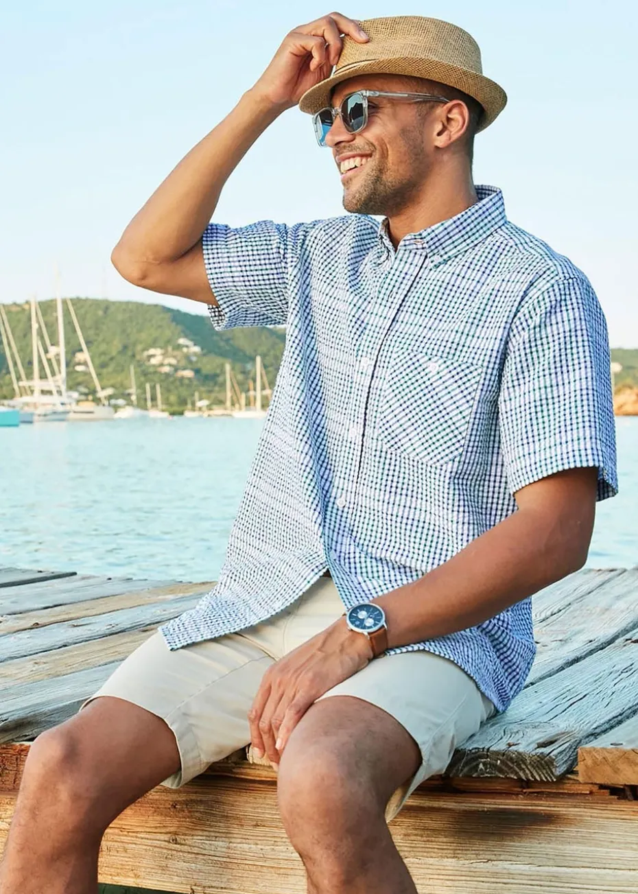 This breathable cotton seersucker shirt has a textured finish that cleverly wicks moisture away from the skin to keep you cool and comfortable on even the sunniest of days. Now updated to include fresh new checks and complete with classic short sleeve styling finished with a single chest pocket and dyed-to-match branded buttons, you’ll never lose your cool again.
