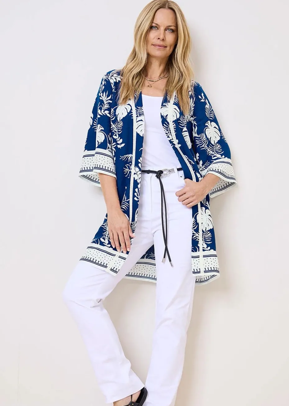 In an exclusive print, this new beautiful kimono is ready to transport you to exquisite gardens and far-away climes, thanks to its vibrant hues and leafy design. Meander through the flowers and keep cool even on the sunniest days in the drapey fabric and flattering fit. Simply pop this lightweight layer on over a plain top and pair it with jeans or trousers for an eye-catching twist to your everyday look.