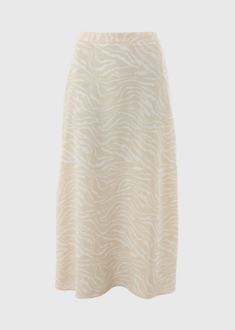 The Cream Zebra Print Flared Hem Midaxi Skirt is a stylish and eye-catching piece that blends bold design with a flattering fit. Featuring a subtle zebra print on a soft cream base, this midaxi skirt offers a modern, edgy twist on a classic silhouette. The flared hem adds movement and elegance, making it perfect for both casual and dressier occasions.