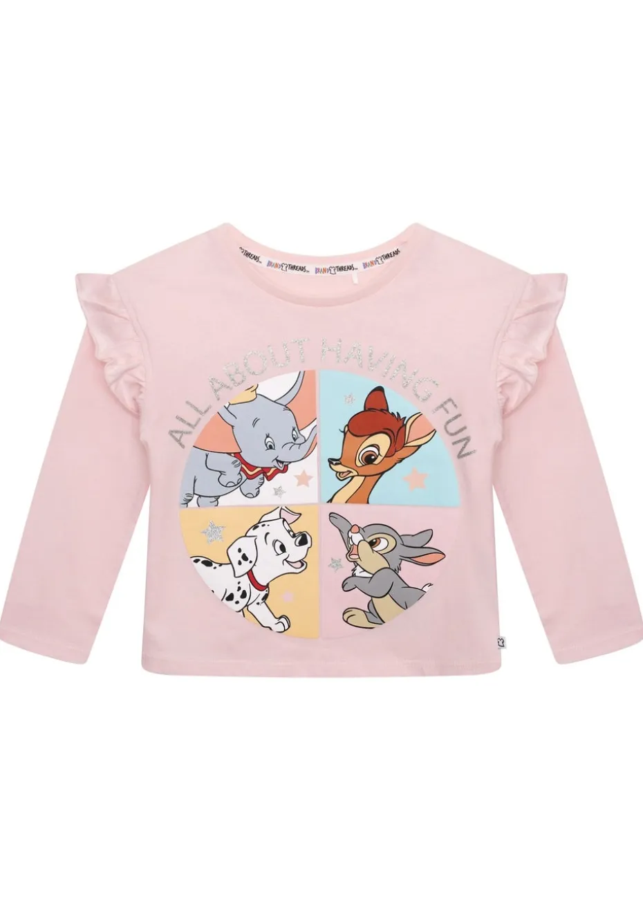 The pawfect tee for little Disney lovers! This top features a beautiful frill detail, long sleeves and a soft pink organic fabric. Completed with a plastisol print of all their characters from the most-loved Disney films; Bambi, 101 Dalmatians and Dumbo!