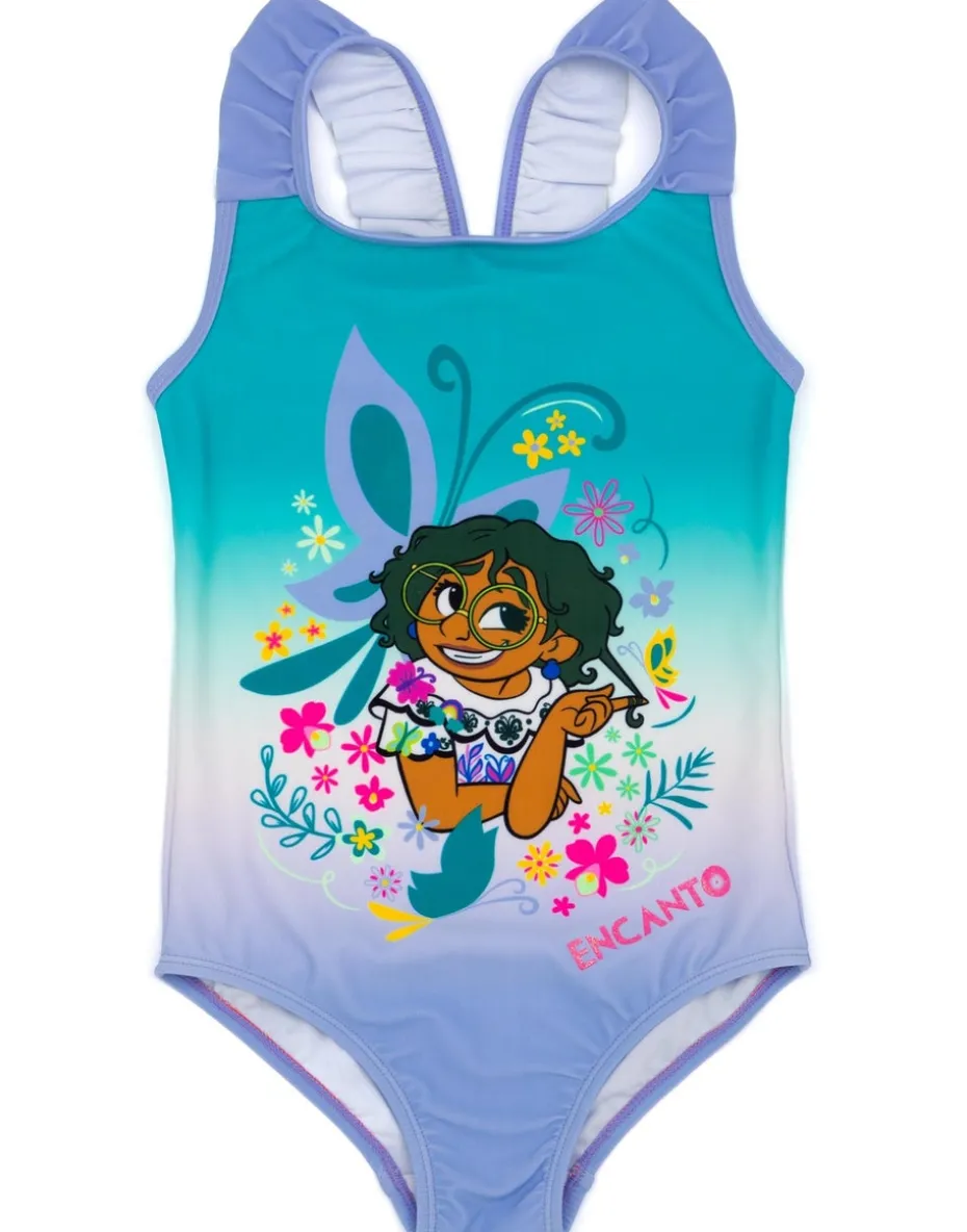 Make swimming even more fun in this adorable Disney Encanto swimsuit for children and toddlers! The blue-to-purple ombre swimming costume features Mirabel Madrigal surrounded by magical flowers and a butterfly. The sunbathing suit comes all in one with two frilly straps ensuring it is secure and easy to slip on whilst making it stylish. It is made from fast-drying polyester and elastane for a light and comfortable feel and is available in sizes 3-4 years, 4-5 years, 5-6 years, 6-7 years, 7-8 years, 8-9 years and 9-10 years. Whether they are splashing around in the water or just playing on the sand, they are sure to have fun in this cossie! Take Care Of Me – We really want to ensure you experience the longest life with your product, so please follow any care instructions provided with your product and do not hesitate to contact our customer care team if you have any queries.