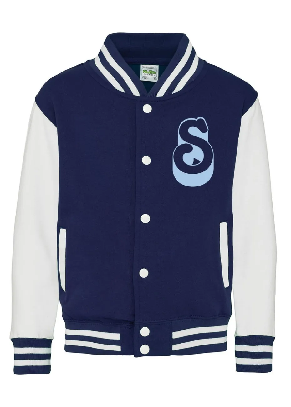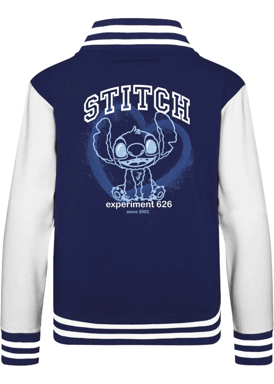 Add a tropical twist to your child’s wardrobe with this Lilo & Stitch varsity jacket! Featuring a classic navy and white design, this jacket brings a playful touch of Hawaiian style with everyone s favourite mischievous alien, Stitch. Made from a soft and comfortable cotton-blend fabric with a cosy fleece lining, it’s ideal for keeping warm on cooler days. The jacket showcases a bold Stitch patch on the chest and contrasting white sleeves, with striped ribbed cuffs and hem for that timeless varsity look. Easy snap-button fastening makes it a breeze to throw on, and it’s perfect for layering over casual outfits, whether for school, play, or adventure!