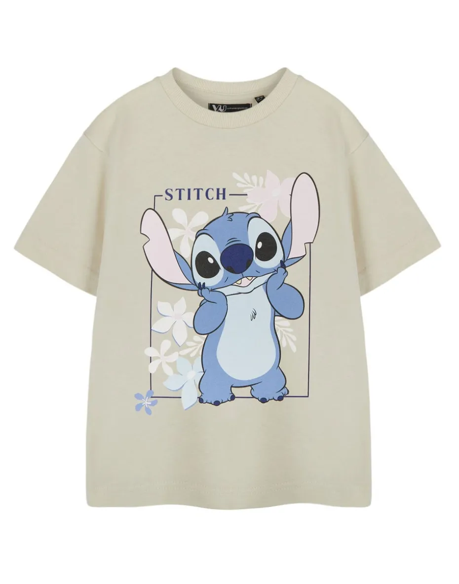 Disney Lilo & Stitch Girls Beige Big Stitch T-Shirt (3 – 14 Years)