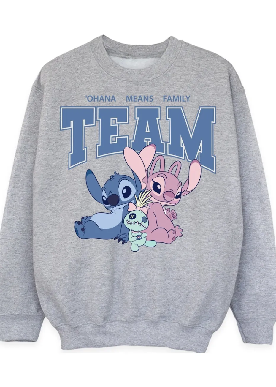 Disney Lilo & Stitch Ohana Team Girls Heather Grey Sweatshirt (3-13 Years)