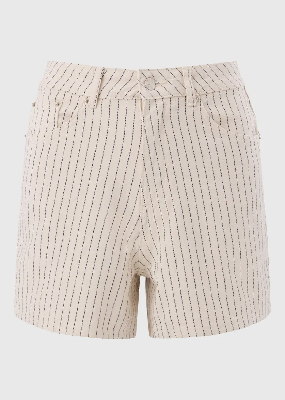 The ecru stripe high waisted shorts are a must-have for any fashion-forward woman. These high-waisted shorts are made from a comfortable, yet stylish, ecru fabric that will keep you looking and feeling your best all day long.