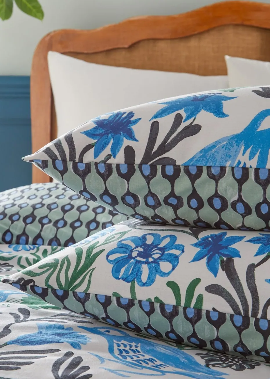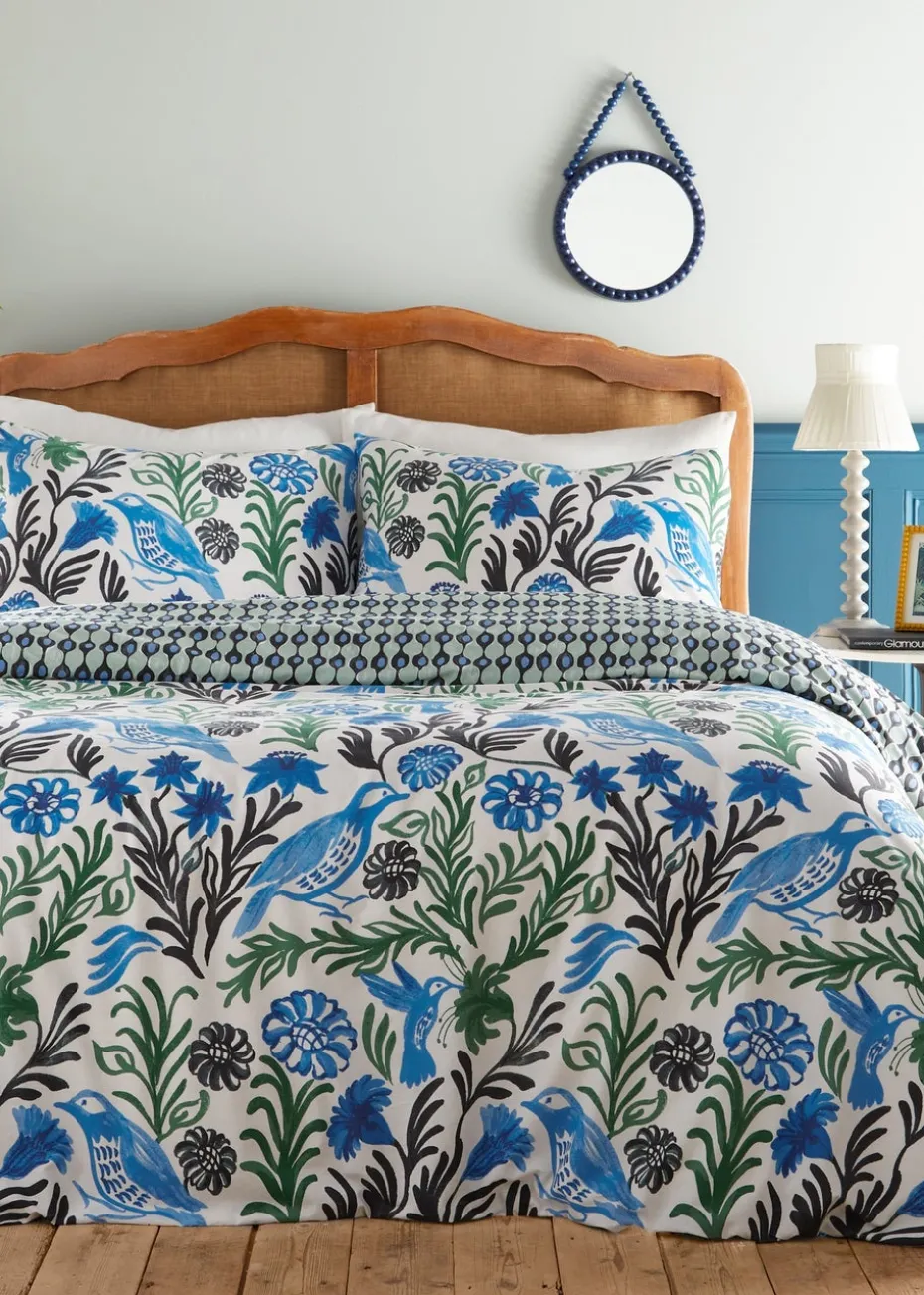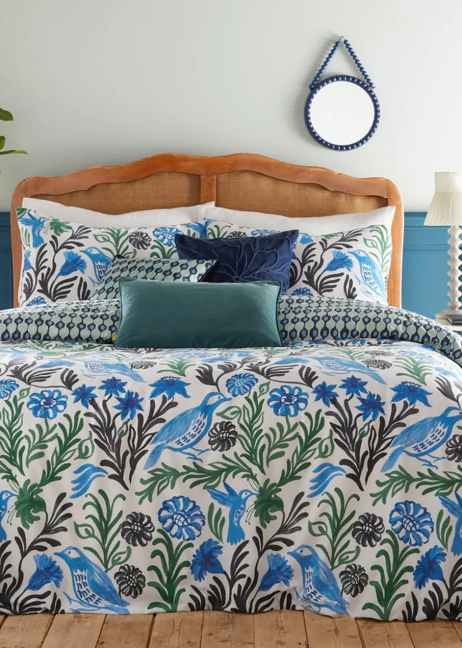 Add some Mediterranean flair to your bedroom with the Alentejo duvet cover set. The birds and florals are hand-painted in a range of watercolour tones, evocative of Portuguese potteries with their stylised motifs and vivid colour against clean, crisp white. This design is complete with a globally patterned reverse for an alternative look. A fantastic way to add some amazing abstract art to your bedroom!