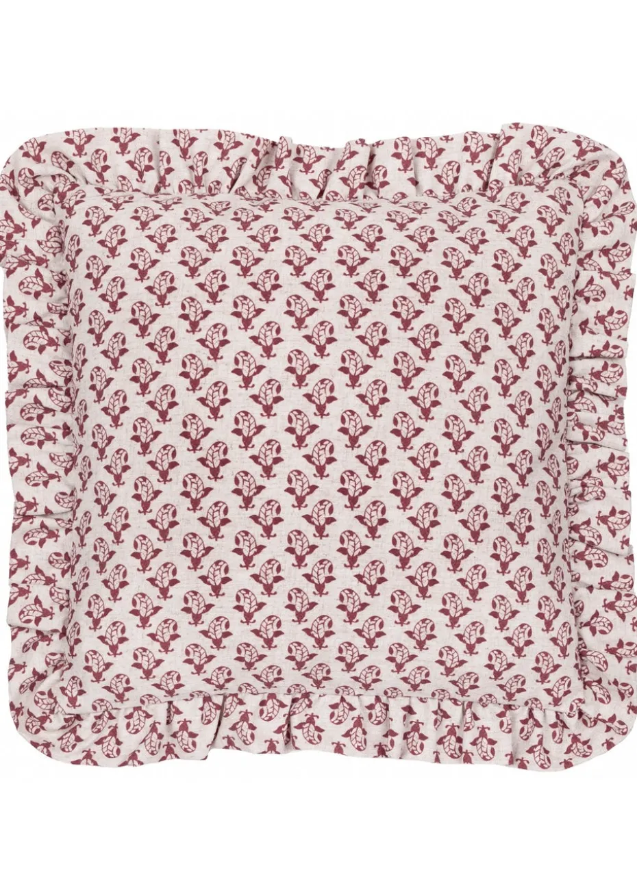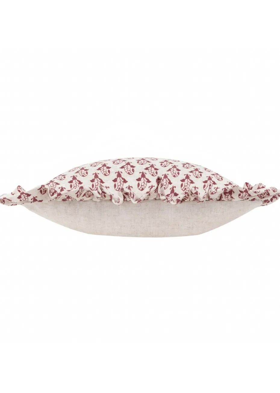 Furn Lulah Block Printed Ruffle Red Cushion (45 x 45 x 8 cm)