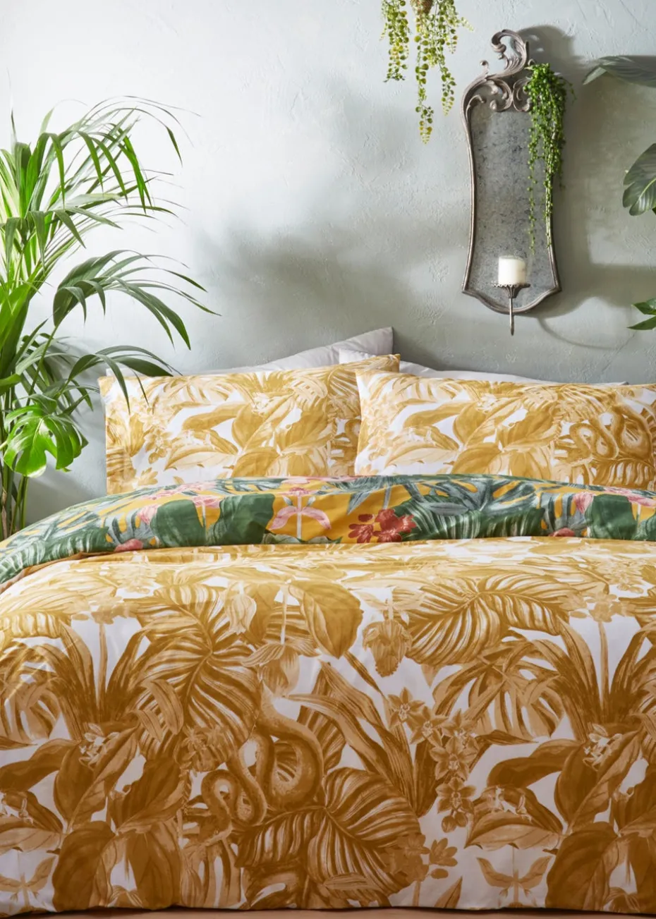 Get lost amongst the tropical floral jungle with this beautiful watercolour bed set. Delve deep amongst the tropical foliage to discover an exotic array of creatures hiding in their natural habitat, from the deadly praying mantis to an elegant snake. Perfect for hot summer nights.