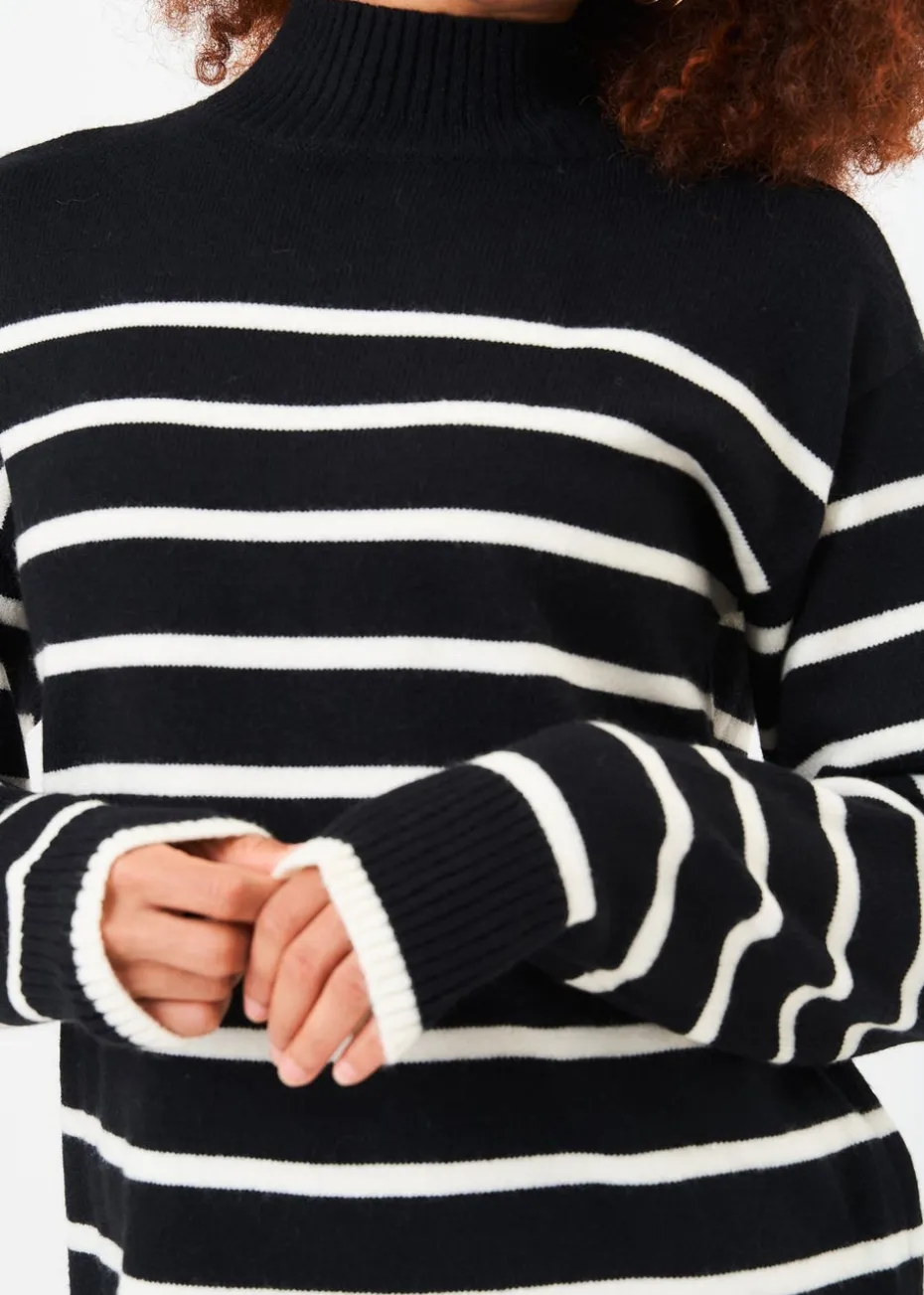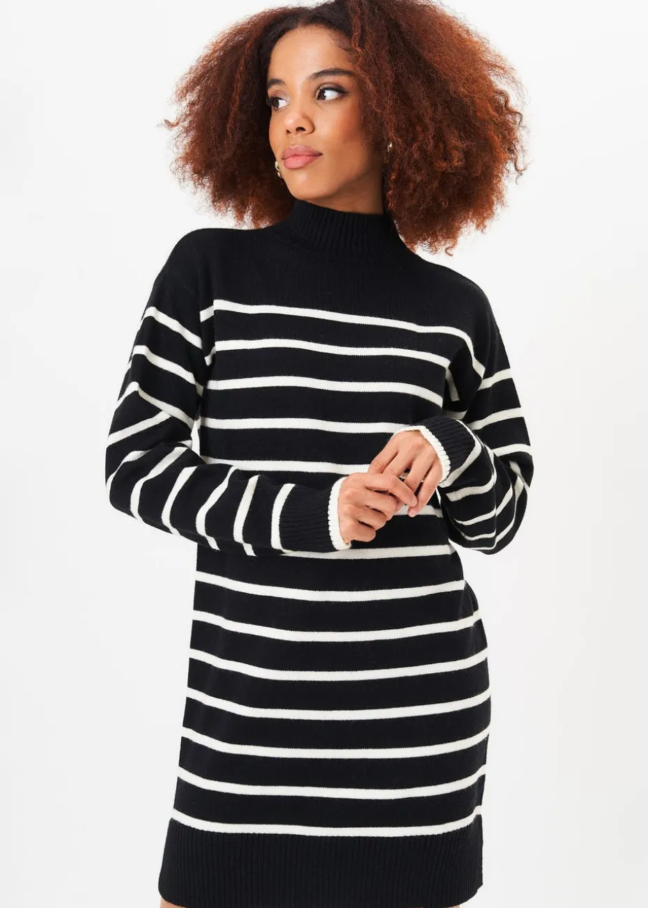 Gini London Black High Neck Stripe Oversized Tunic Dress