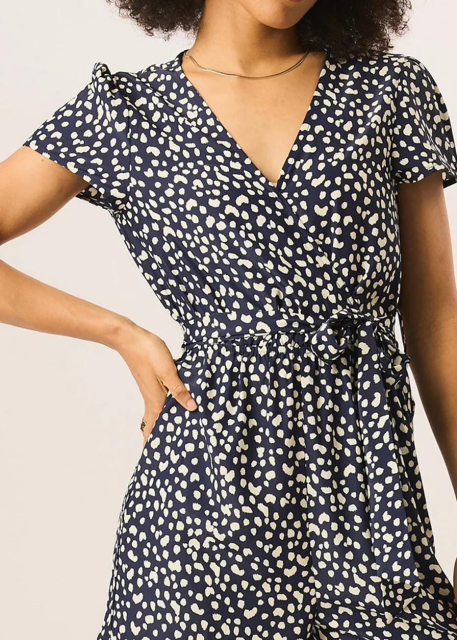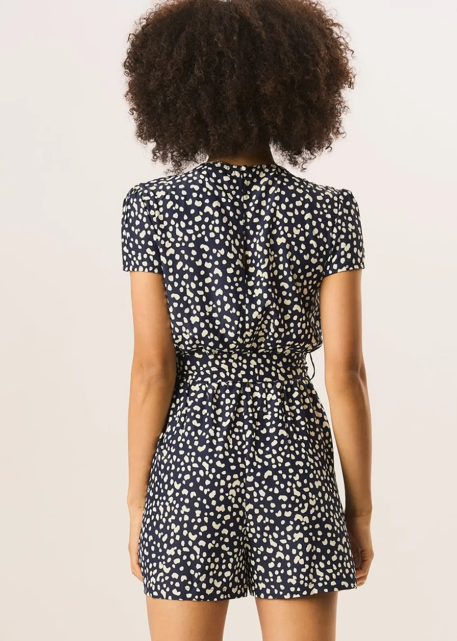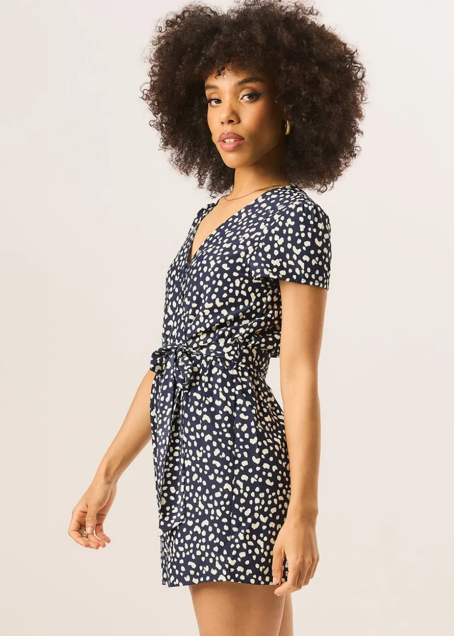 Gini London Blue Animal Print Belted Wrap Playsuit