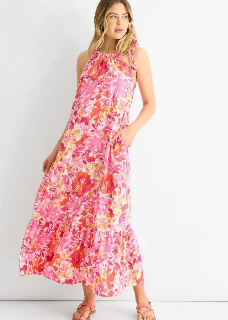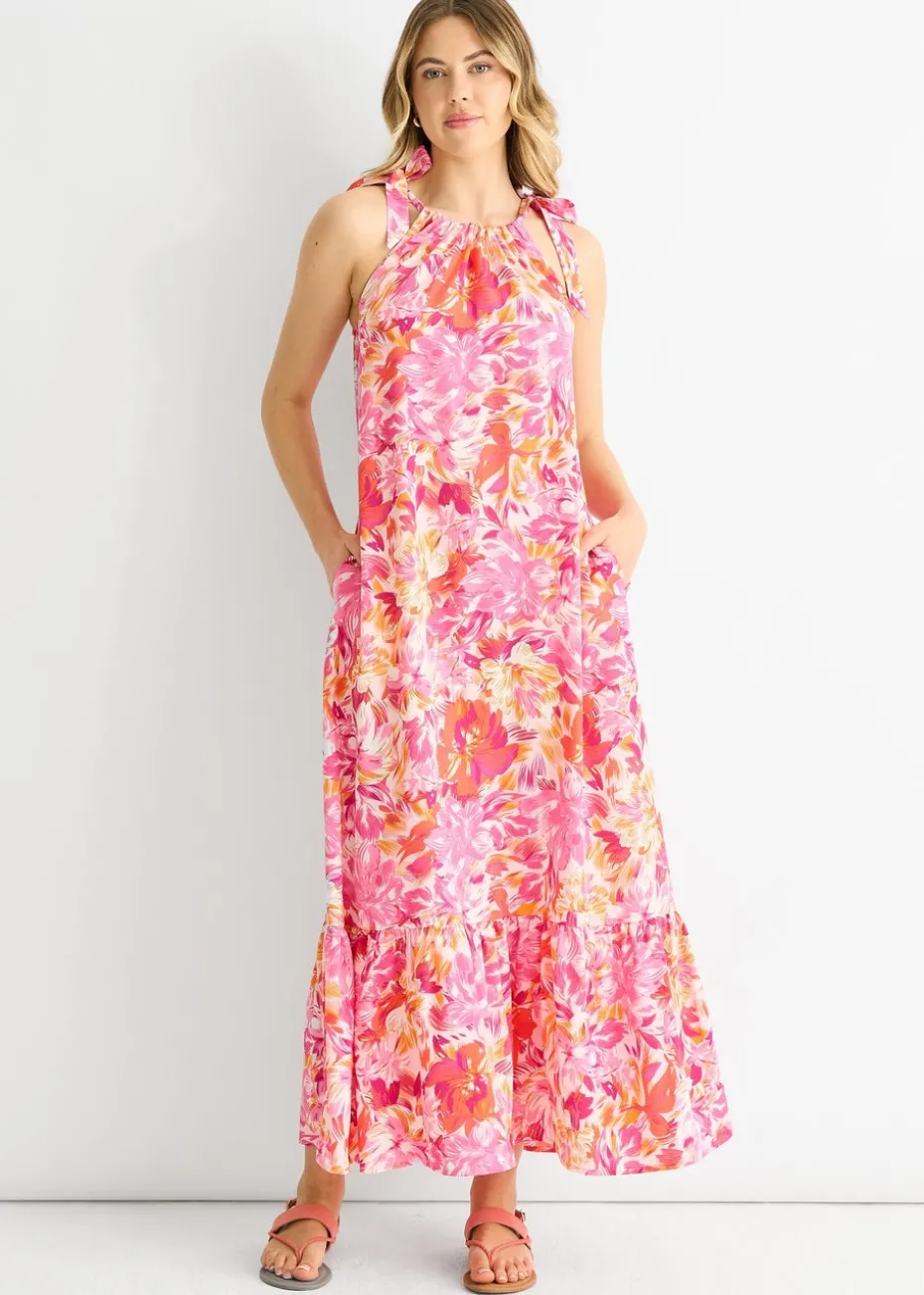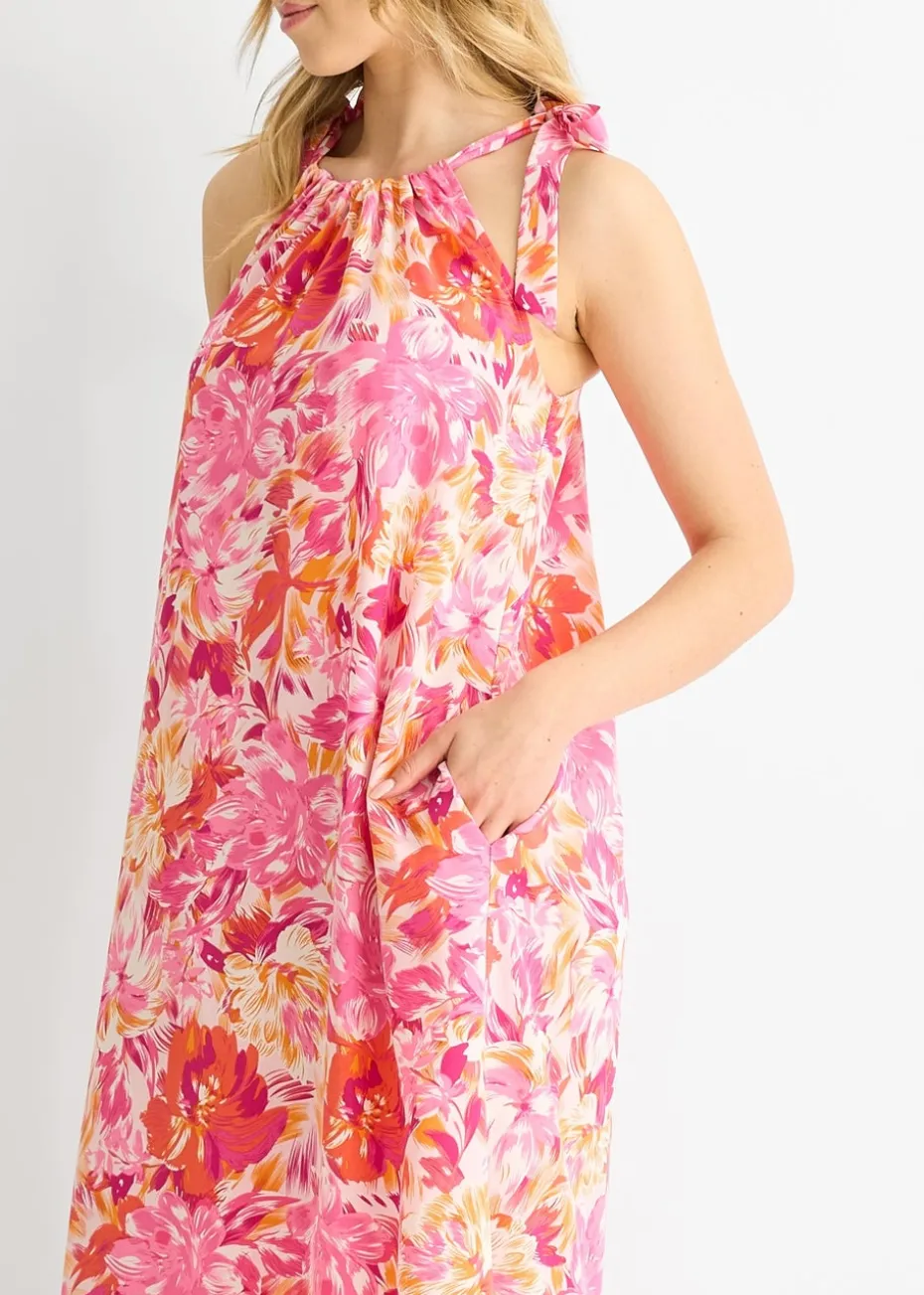 Gini London Red Floral Tie Straps Trapeze Dress