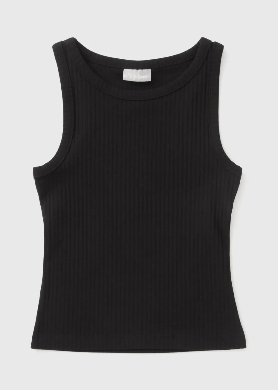 Add a pop of colour to her everyday wardrobe with this Girls Black Ribbed Vest, a comfy and versatile staple for any season. Whether layered or worn solo, this vest is perfect for playtime, outings, or lounging at home. Wear with denim shorts and a sunhat.