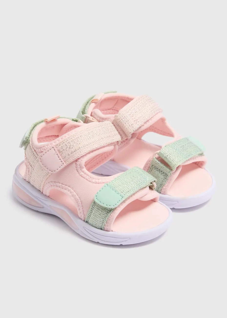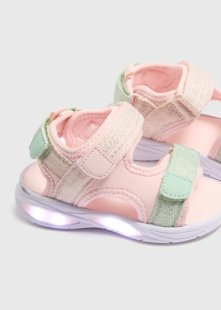 Let her sparkle with every step! The Girls Pink Light Up Sandals are the perfect mix of fun, fashion, and function. With bright pink tones and light-up soles that flash as she walks, these sandals bring extra magic to every move. Easy-to-use rip tape fastening straps keep things comfy and secure, while the soft cushioned footbed supports all-day play.