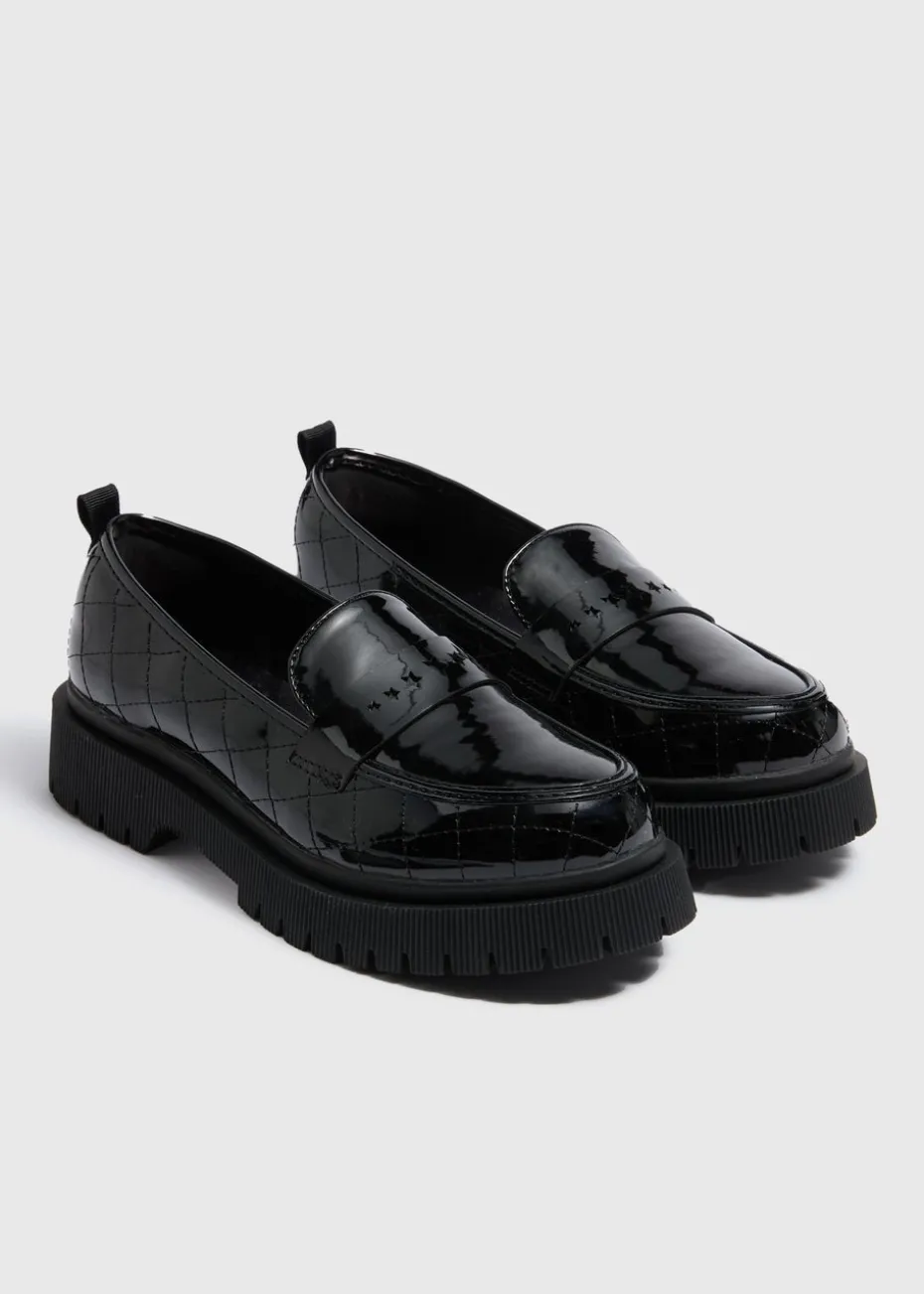 Durable, stylish, and designed for comfort, these black chunky loafers are the perfect school shoe for girls. Crafted to provide all-day support, they feature a cushioned insock and cushioned heel that help keep little feet comfortable throughout busy school days. The chunky sole adds a modern edge while ensuring excellent grip and stability on all surfaces.
