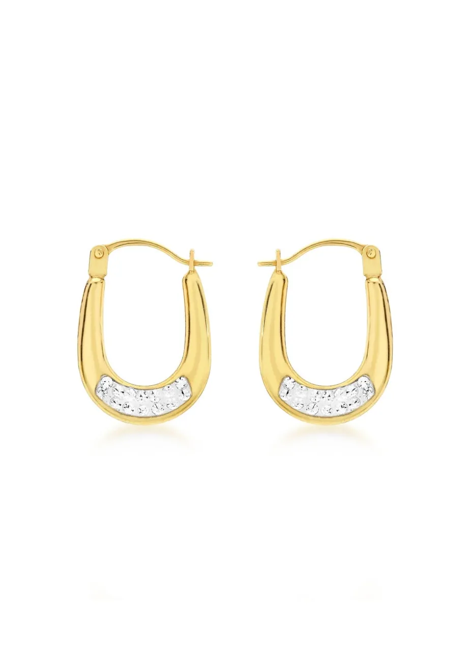 The 9ct Yellow Gold Crystalique Oval Creole Earrings offer a graceful blend of elegance and sparkle. The oval shape provides a unique twist on the traditional creole design, while the crystalique stones add a refined touch of brilliance.