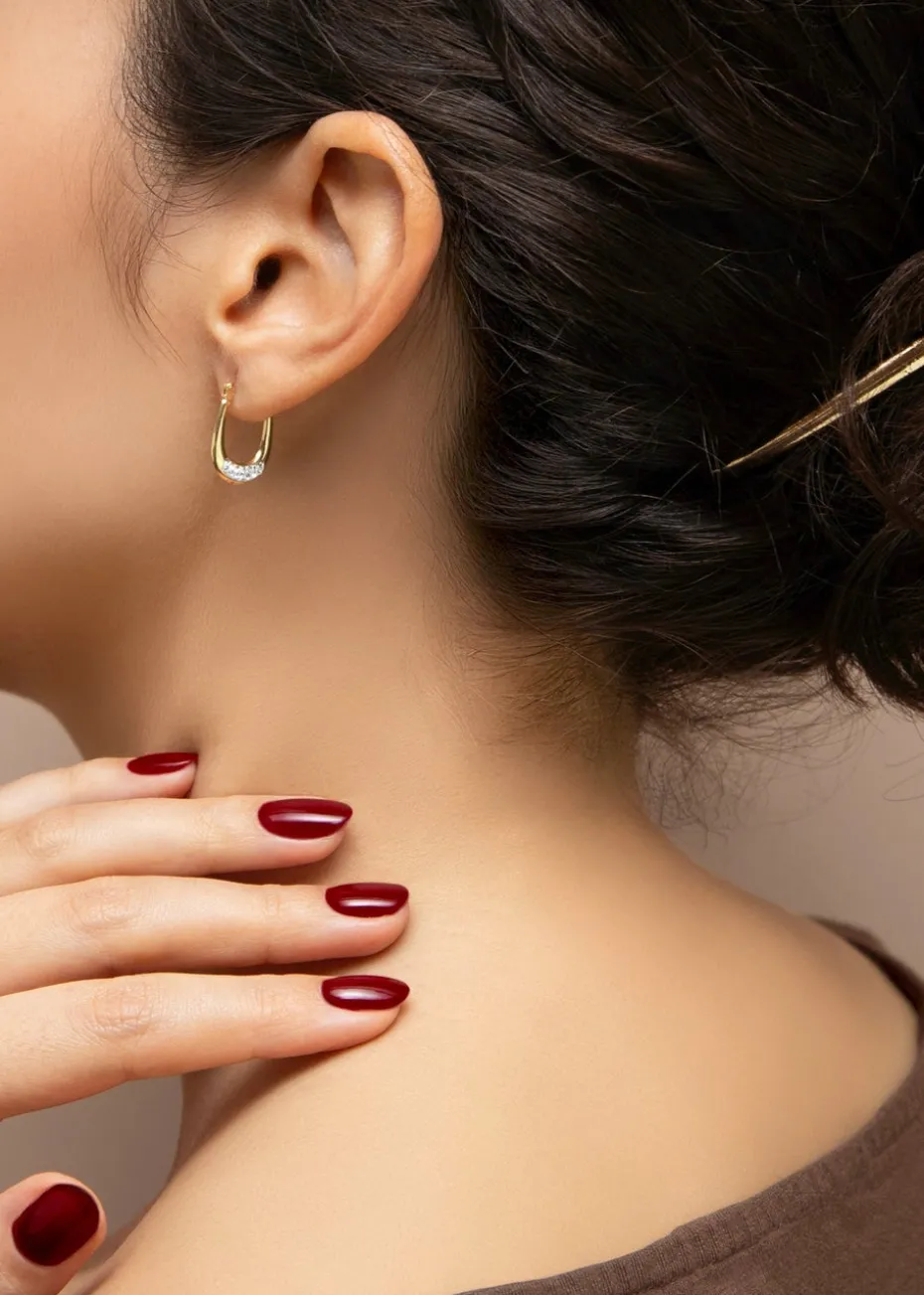 The oval shape of these creole earrings adds a modern, elongated look, while the crystals bring an extra layer of elegance. They are versatile enough to pair with both casual and formal outfits, making them suitable for everyday wear or special events.