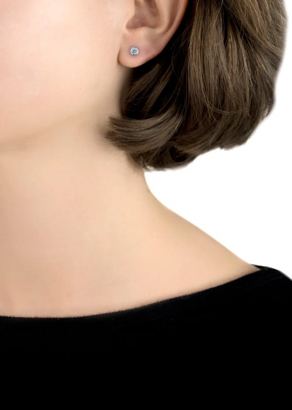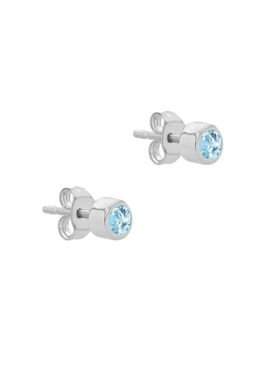 Golden Moments Sterling Silver CZ March Birthstone Stud Earrings