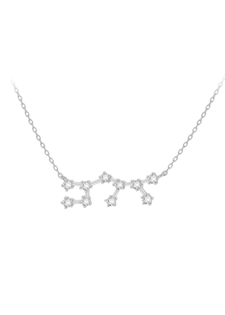 Crafted from sterling silver, this necklace features a delicate constellation design adorned with sparkling cubic zirconia stones, creating a radiant and ethereal effect.