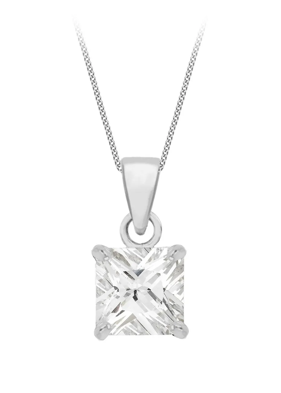 Crafted from high-quality sterling silver, this necklace features a square-shaped pendant set with a brilliant cubic zirconia stone at its center.