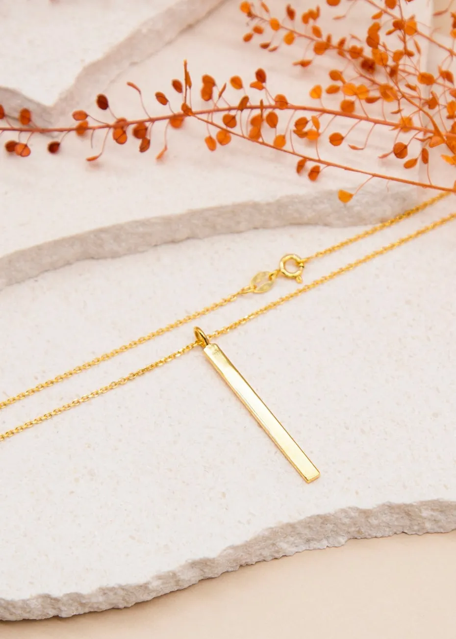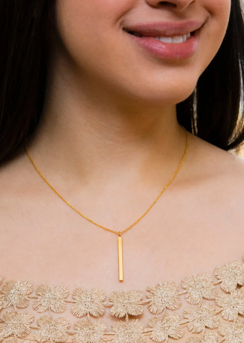 The Golden Moments Sterling Silver Yellow Gold Plated Vertical-Bar Necklace is a sleek and minimalist piece that embodies modern sophistication.