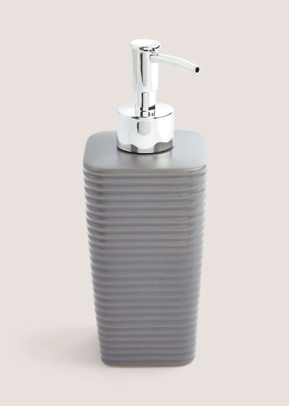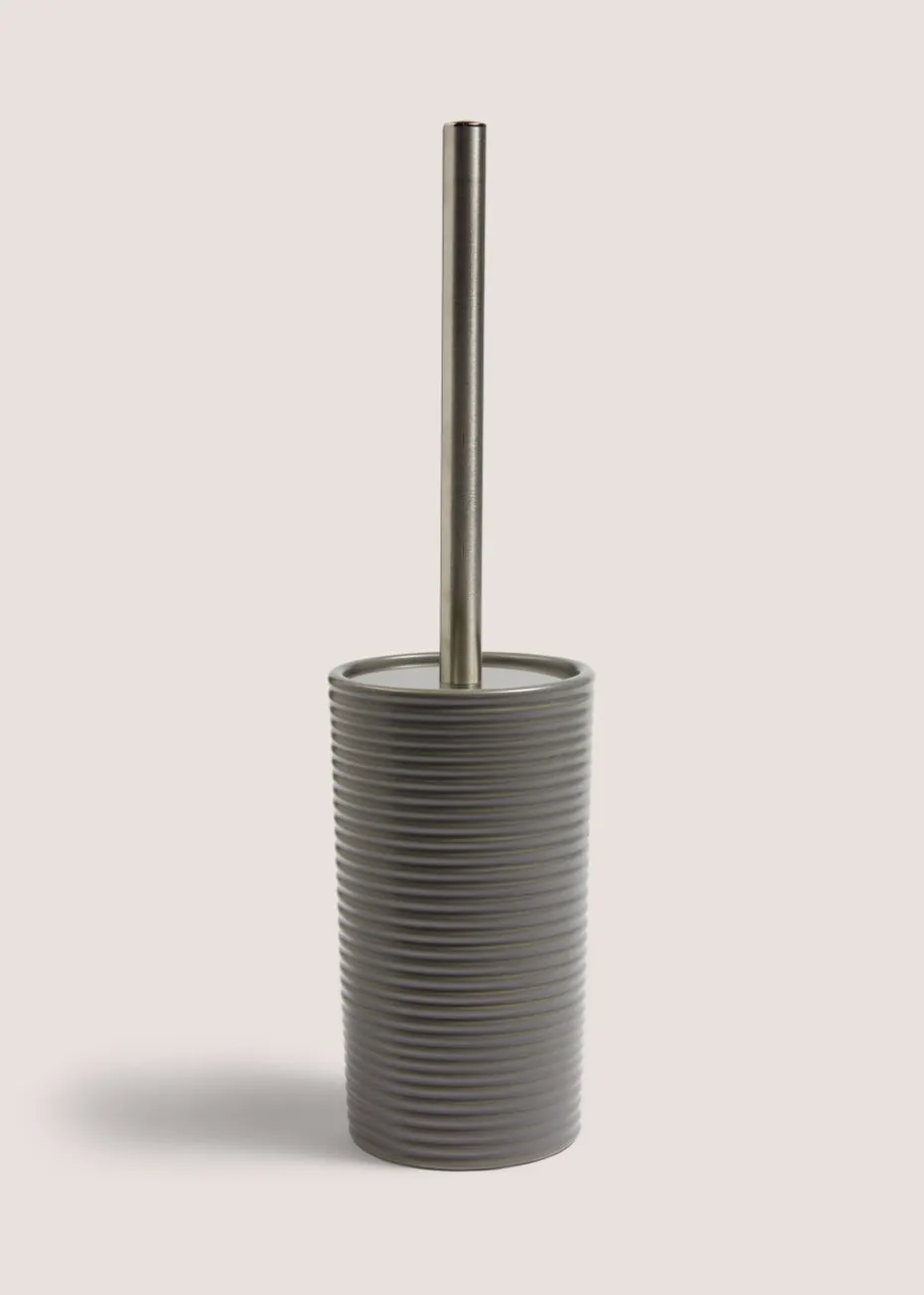 This toilet brush comes with a sleek grey textured holder and comes complete with a metal handle for easy grip.