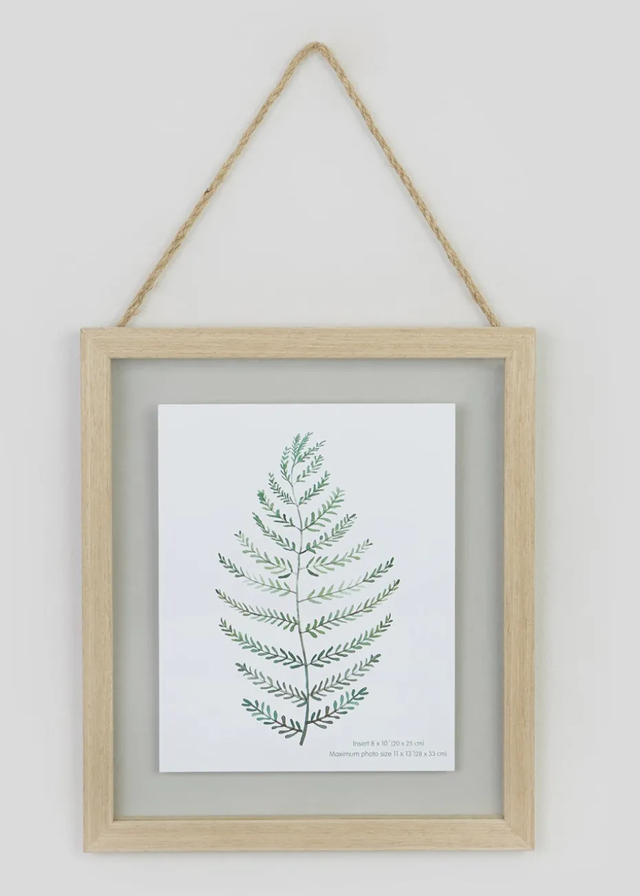 Display special memories from this hanging wooden effect frame, designed with a natural base and glass in the front, as well as a rope handle.
