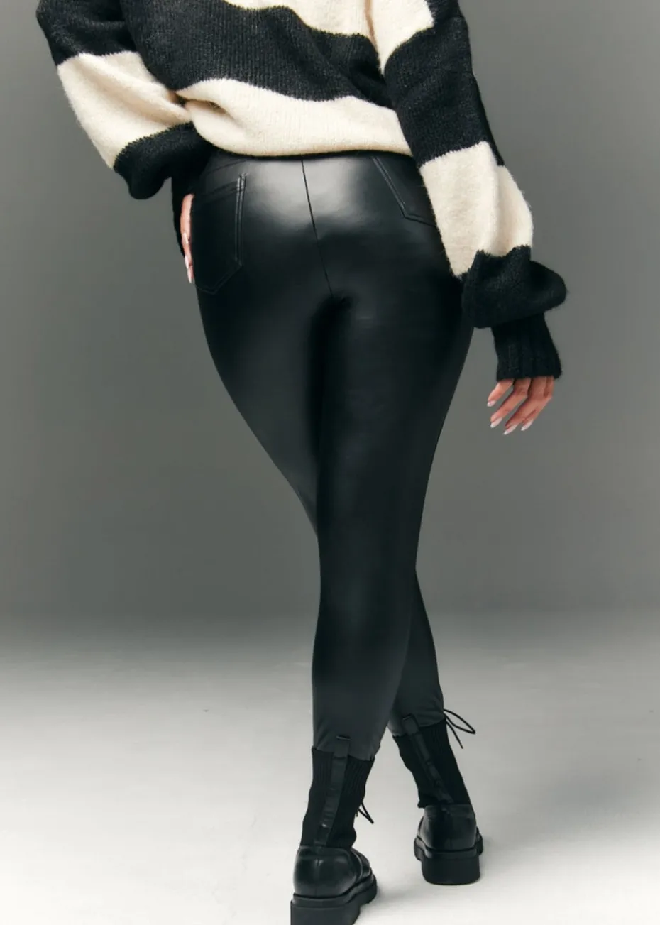We are loving these black high waisted sculpt leggings. Featuring leather look material, these are the perfect addition to your wardrobe this season, pair with a jumper and boots for that cute daytime look we are loving,