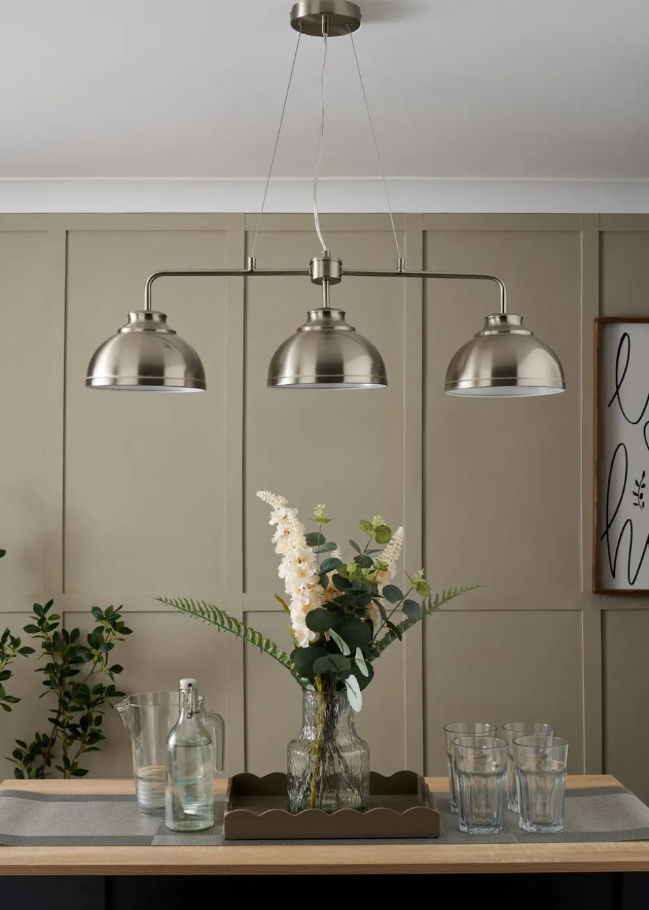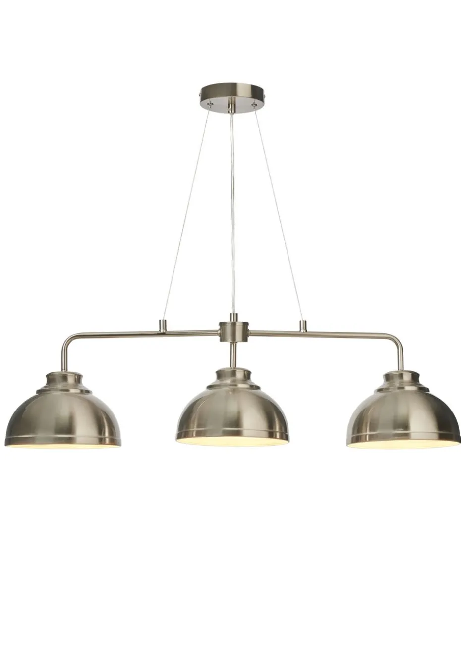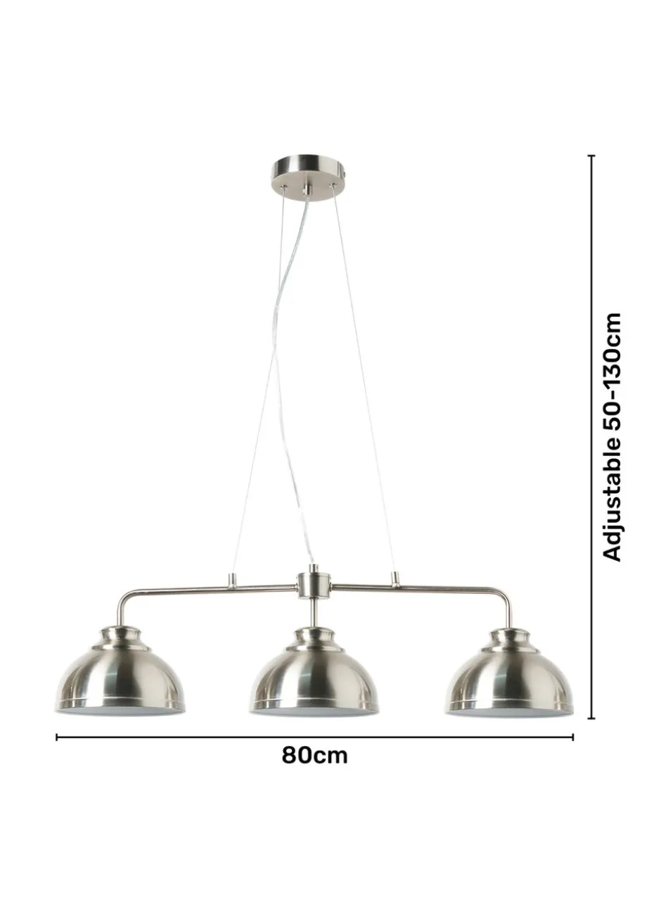 The INLIGHT Brook 3 Light Ceiling Diner Bar is a stylish lighting fixture that blends modern design with industrial aesthetics. This ceiling bar light is perfect for adding a touch of sophistication and industrial charm to dining areas, kitchens, or any space that benefits from focused and ambient lighting. Bulb type: 3 x E14 (not included). Height 50-130cm x Width 80cm, minimum drop 50cm.