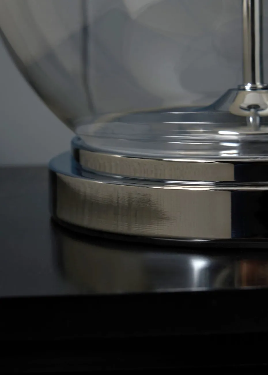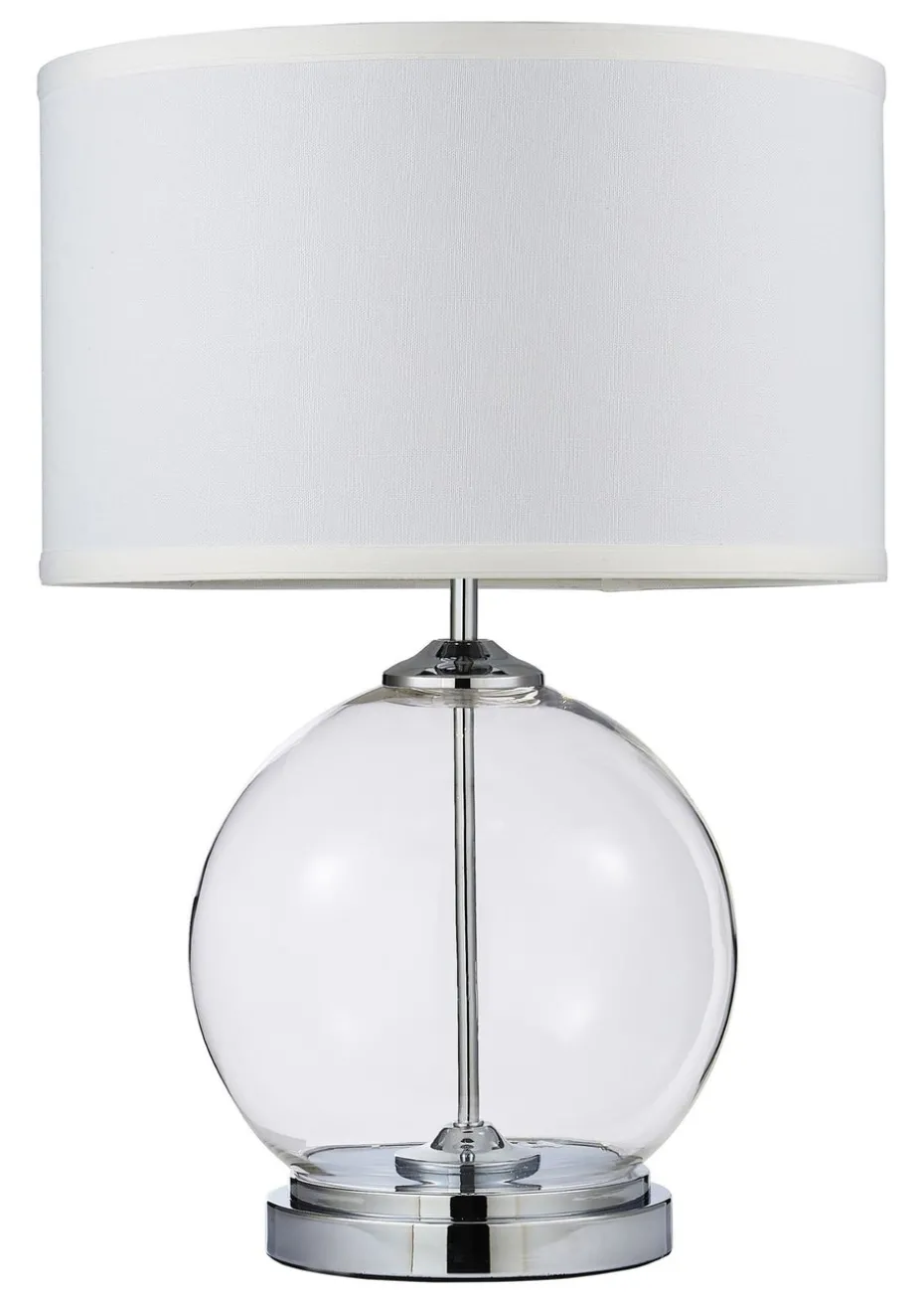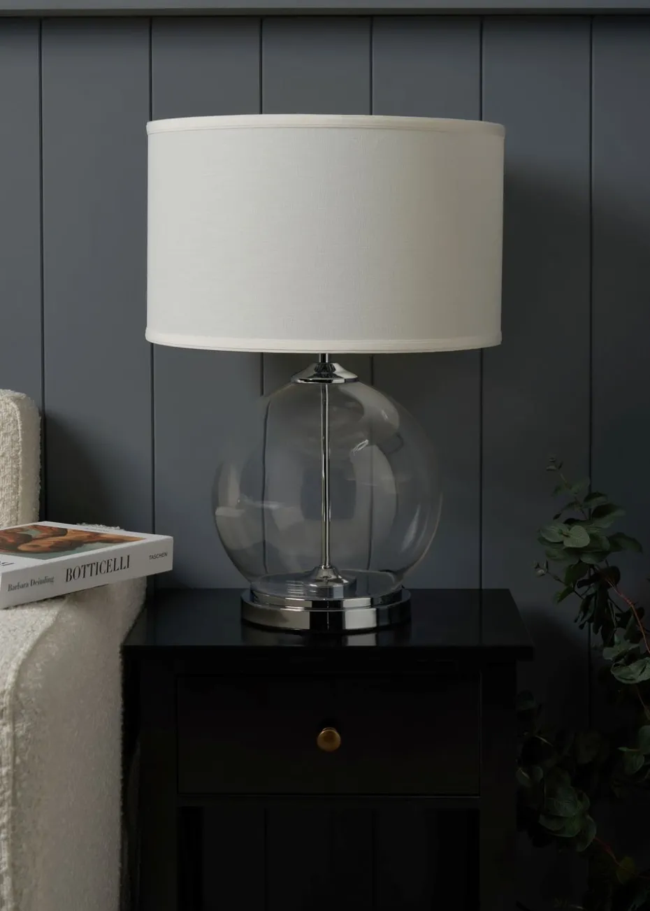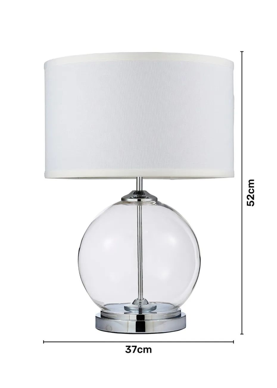 The INLIGHT Dartmoor Table Lamp is a stylish and elegant lighting fixture designed to enhance the ambiance of any room. Featuring a glass sphere, a sleek metal base, and a classic cream shade, this table lamp combines modern design with timeless sophistication. Height 52cm x Width 37cm. Requires: 1 x E27 bulb, not included.