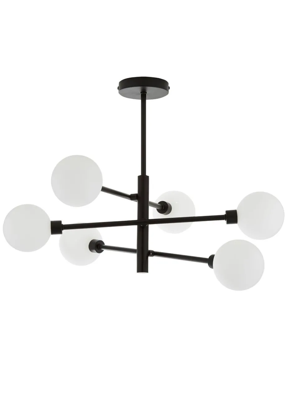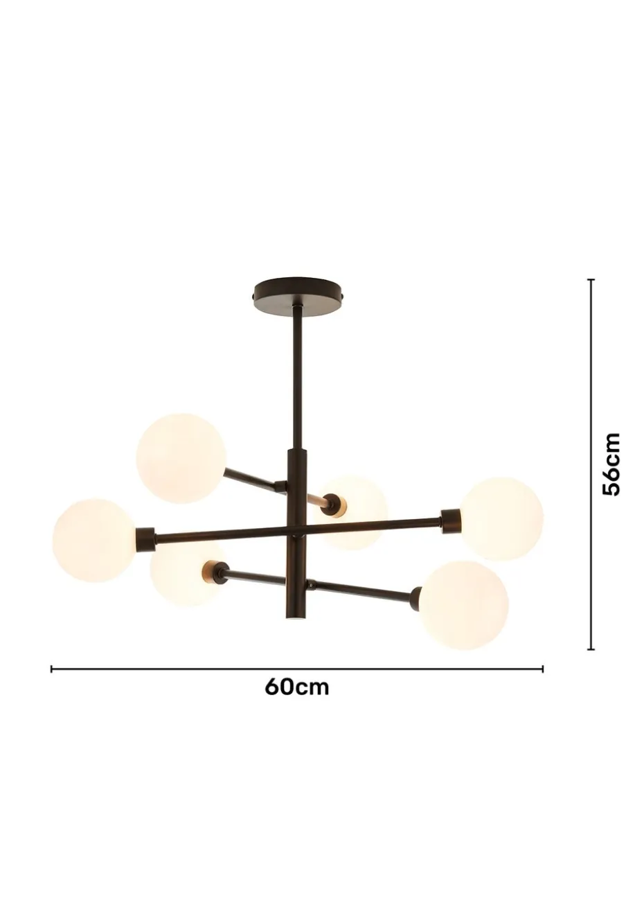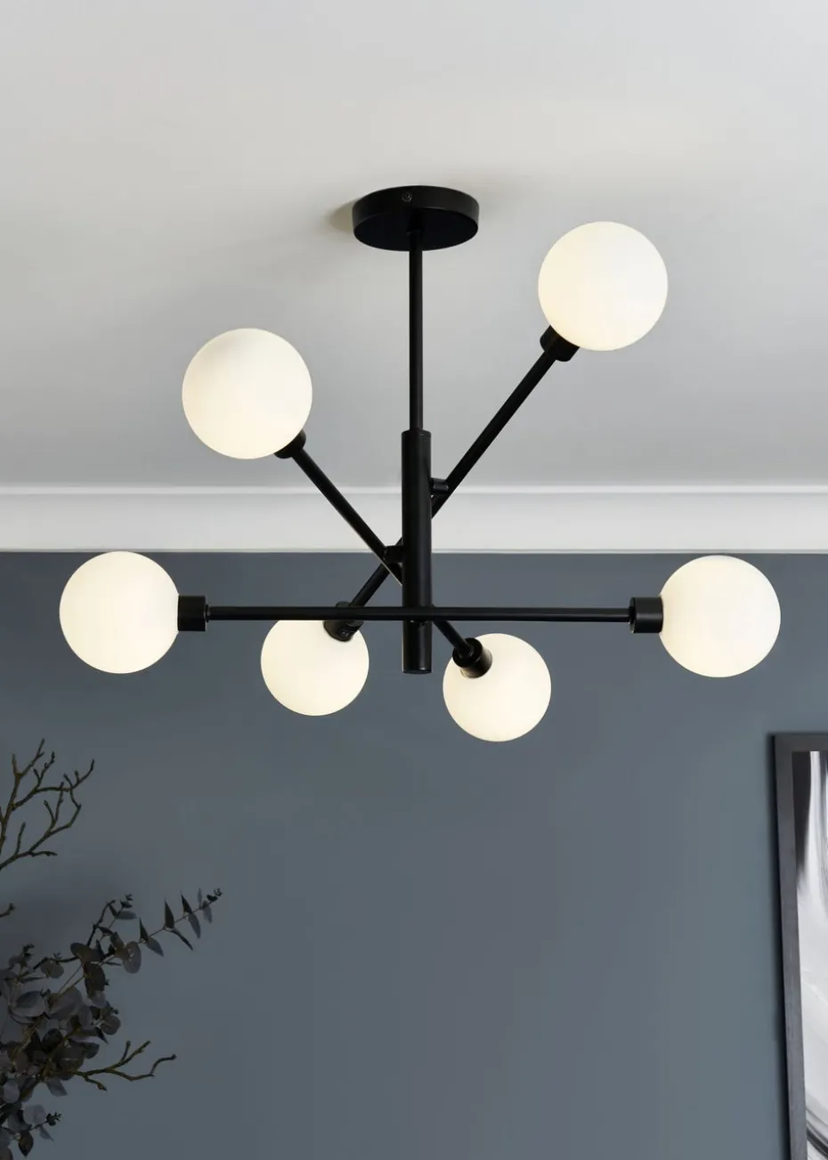 The INLIGHT Nova Semi Flush Ceiling 6 Light Black is a modern and versatile lighting fixture that brings both style and functionality to any room. Its sleek Black finish and unique adjustable crossbar arms design make it a standout piece in contemporary and industrial-themed interiors. Height 56cm x Width 60cm. Requires: 6 x G9 bulbs, not included.