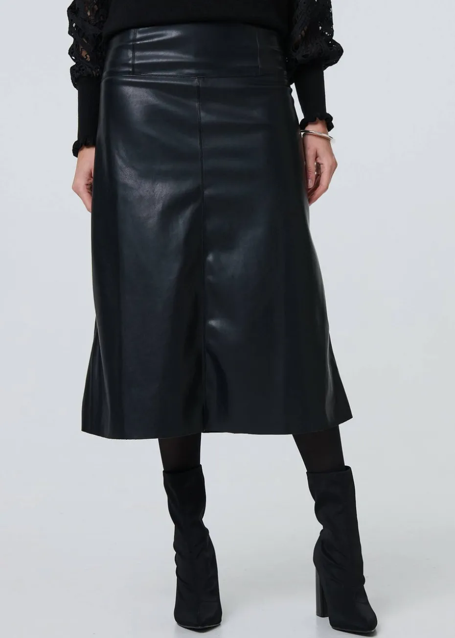 Izabel London Black Faux Leather High Waist Midi Skirt