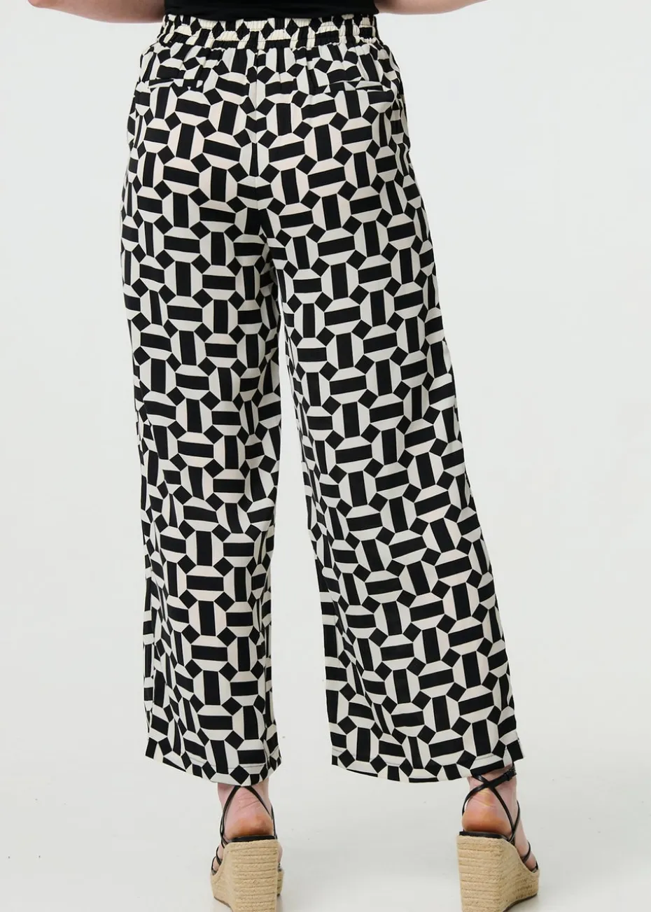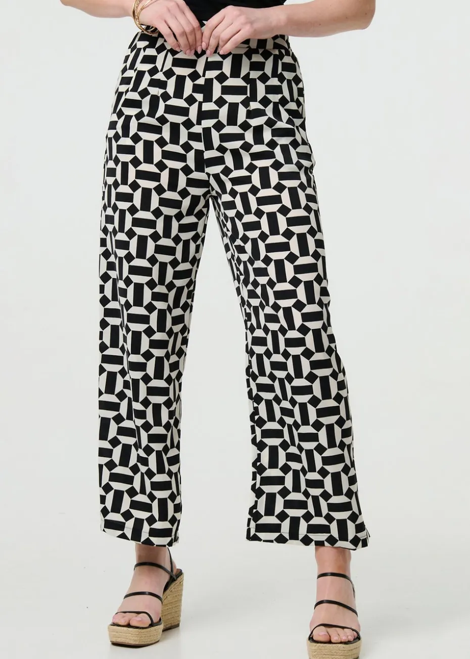 Izabel London Black Geo Print High Waist Wide Leg Trousers