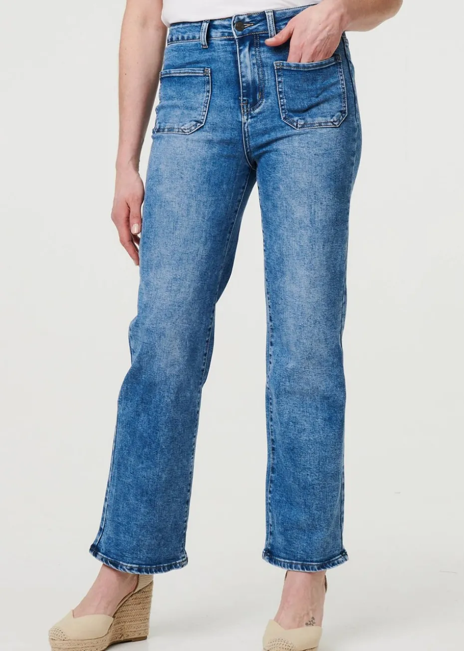 Izabel London Blue Pocket Detail Straight Leg Denim Jeans