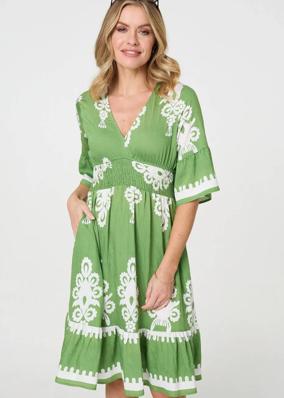 Be the first to review “Izabel London Green Ikat Print Relaxed Short Dress” Cancel reply