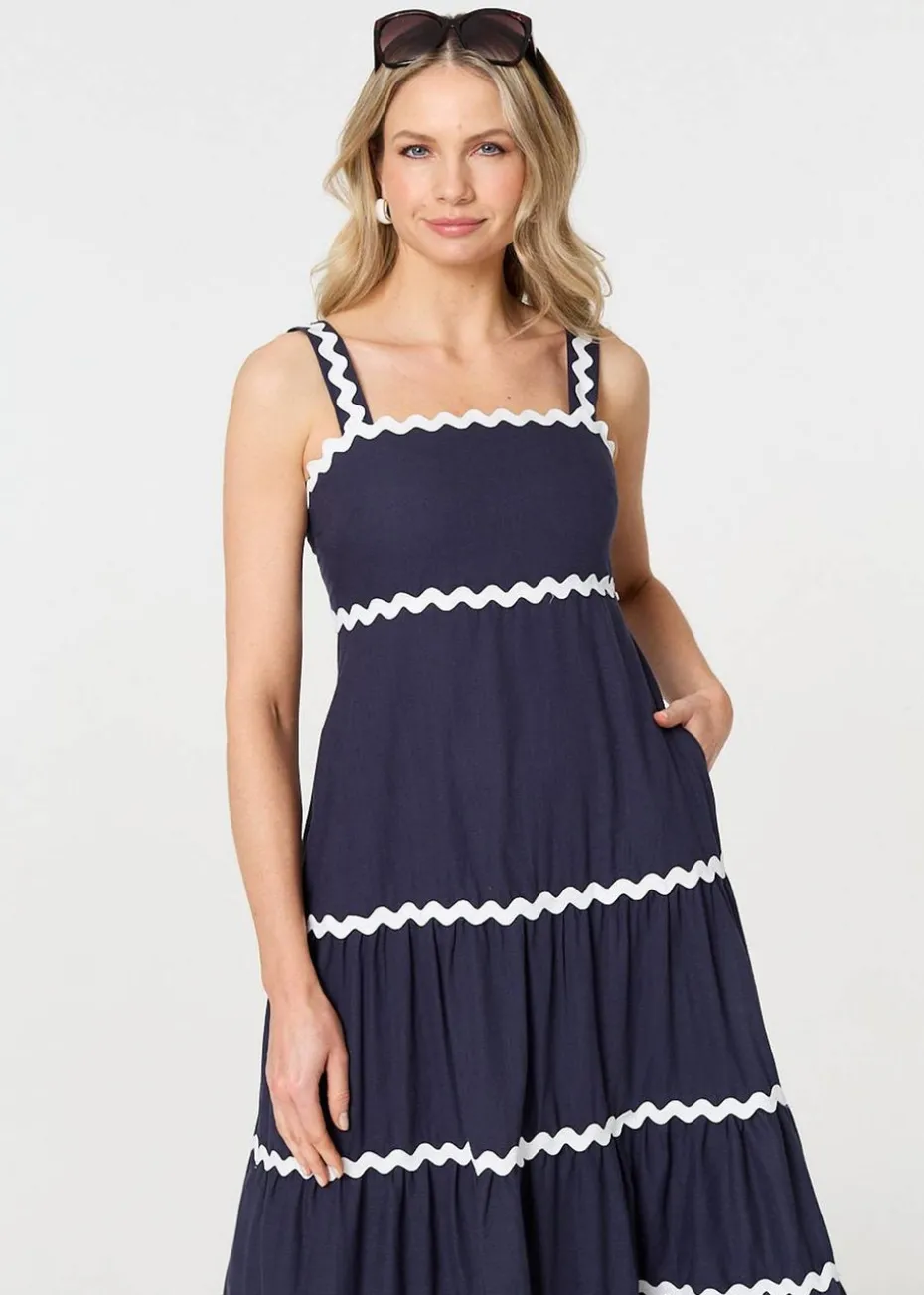 Izabel London Navy Zig Zag Trim Sleeveless Tiered Midi Dress