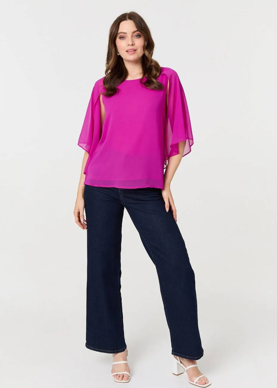 This elegant blouse has cut out panels on the 3/4 sleeves, with a floaty semi sheer texture. Get an elegant finish by pairing this relaxed top with your favourite midi skirt and heels.