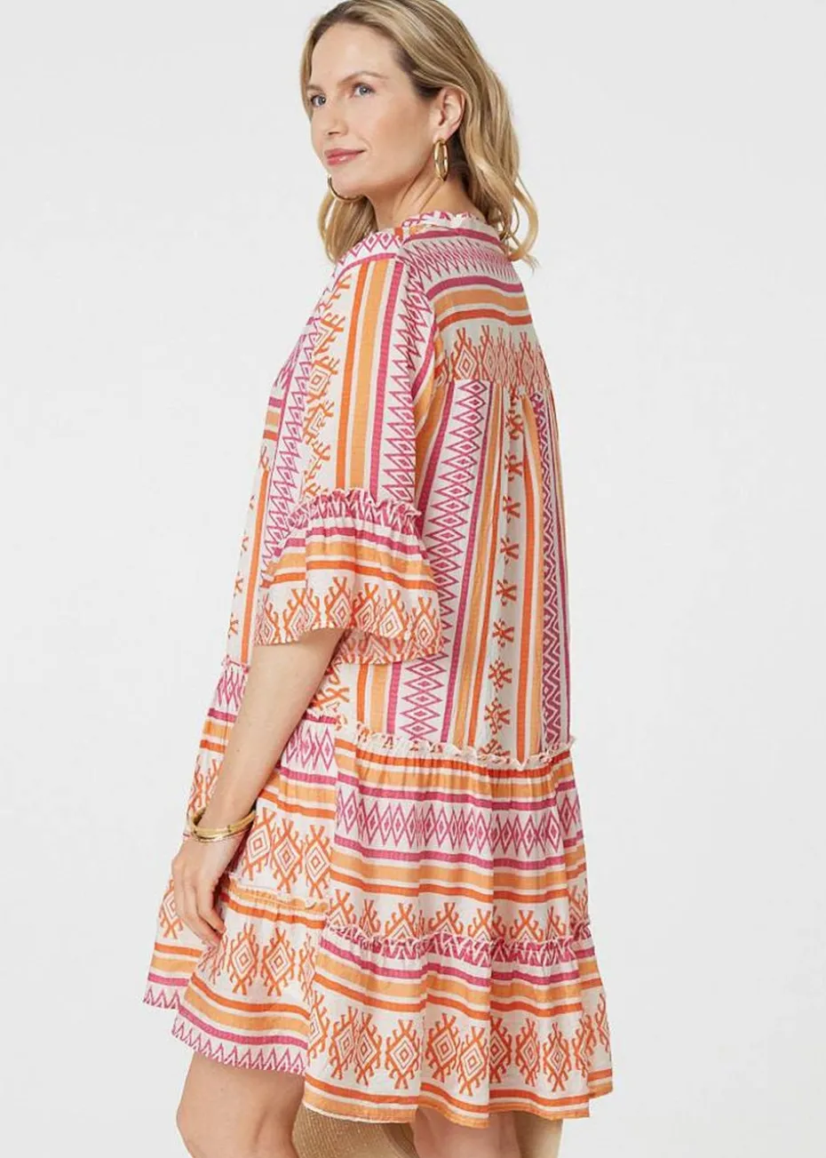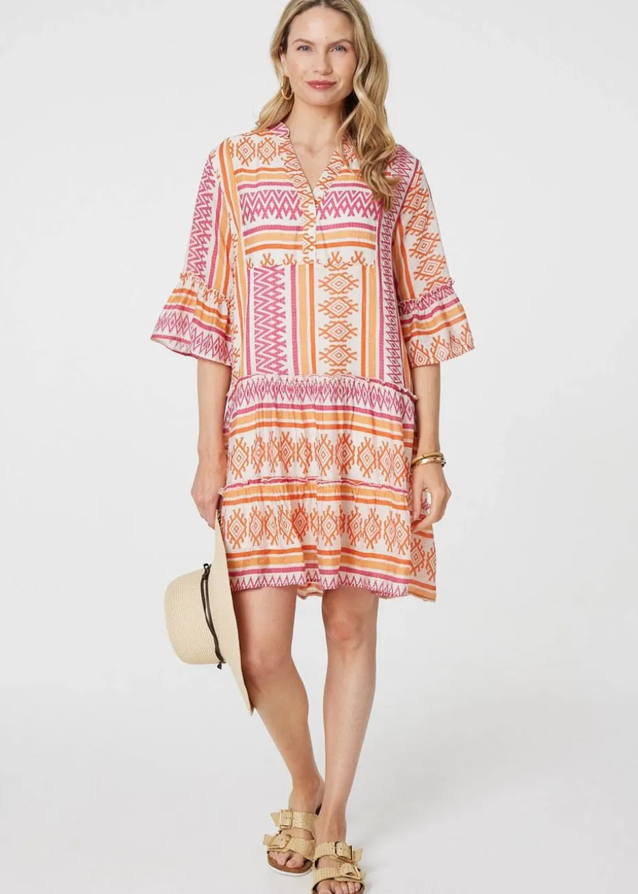 Izabel London Pink Aztec Print V-Neck Short Dress