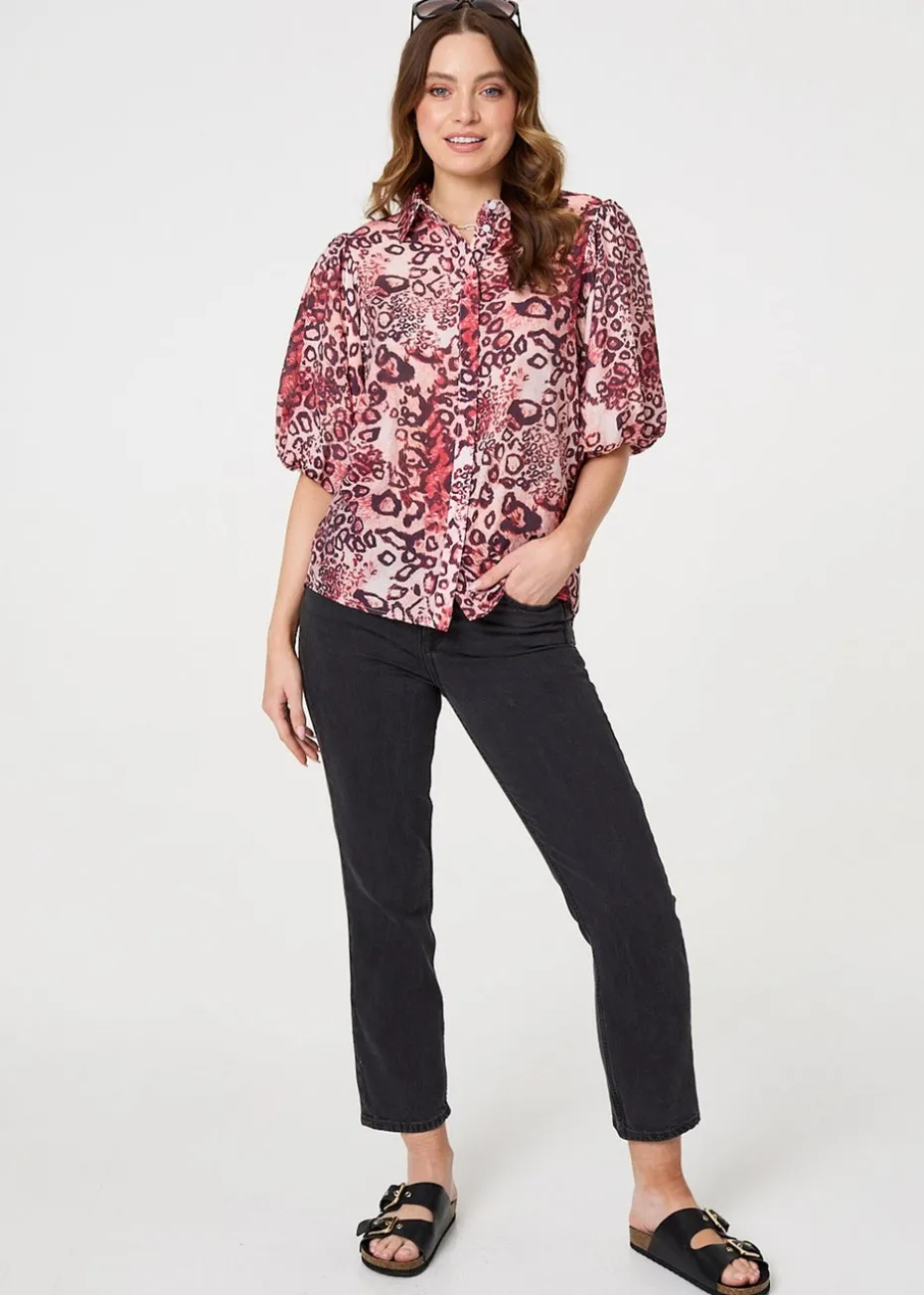 Izabel London Red Animal Print Puff Sleeve Shirt