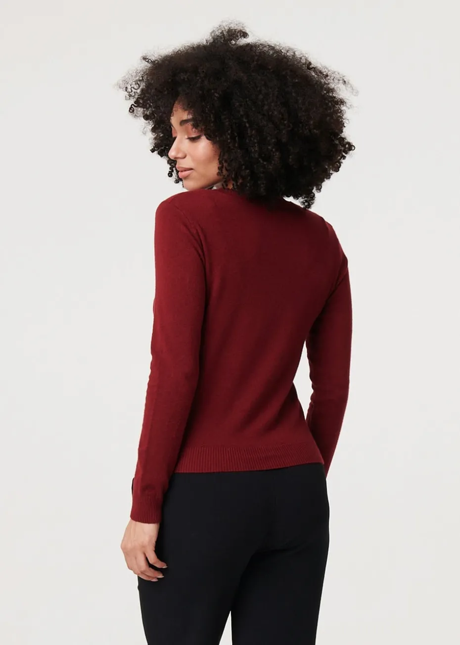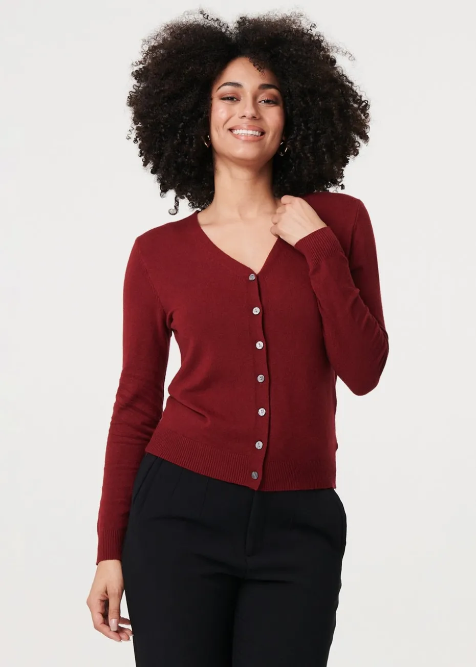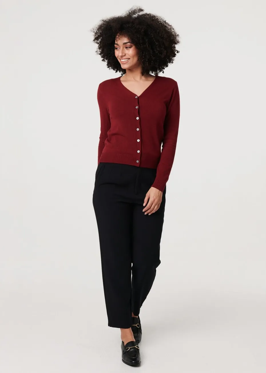 Izabel London Red Cropped Button Up Slim Knit Cardigan