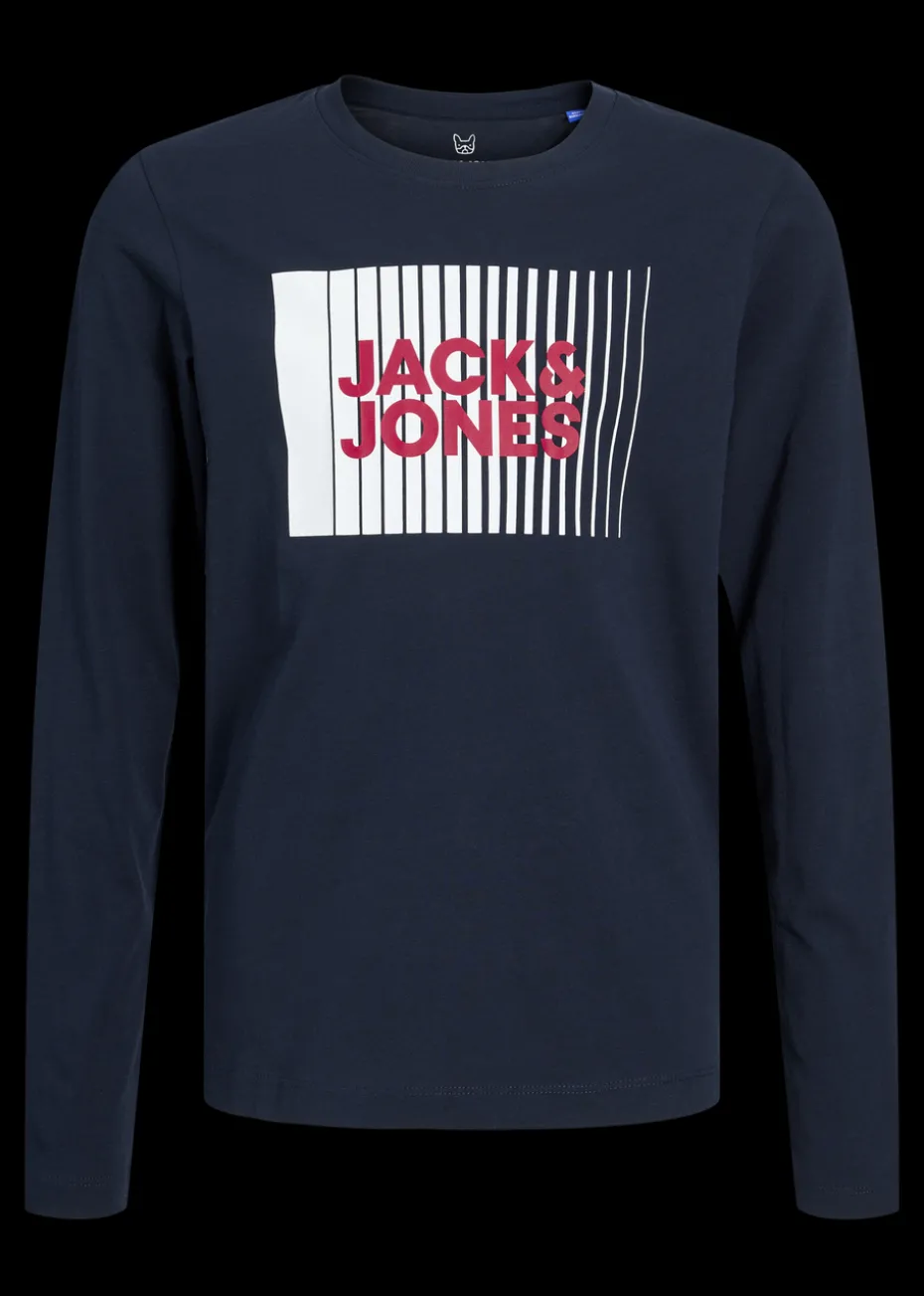 Our long-sleeved Jack & Jones Kids Long Sleeve T-Shirt in navy is sure to make a statement with its bold and vibrant design. It features the iconic Jack & Jones logo prominently displayed on the front, adding a touch of style to their everyday wear.