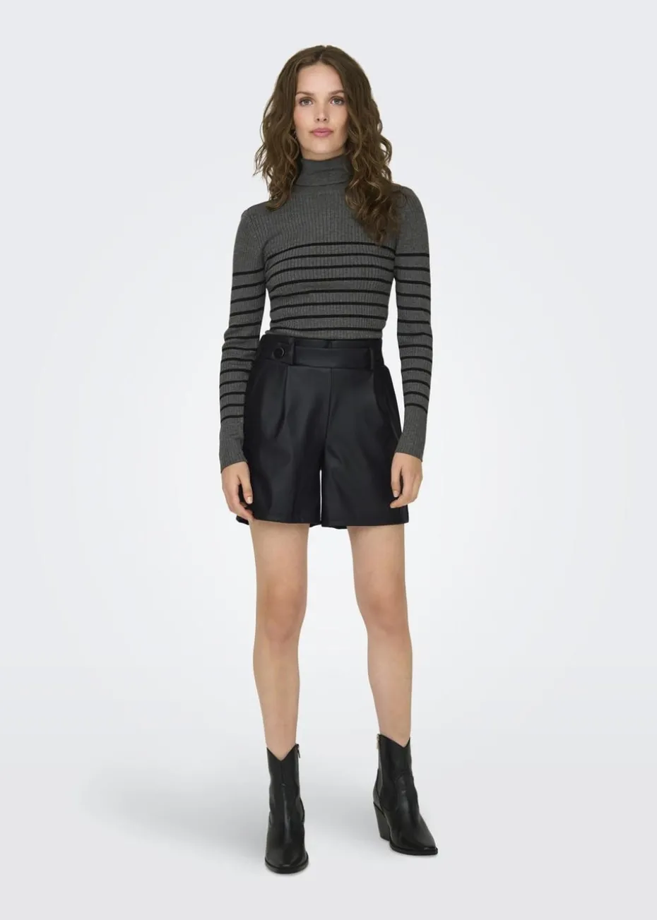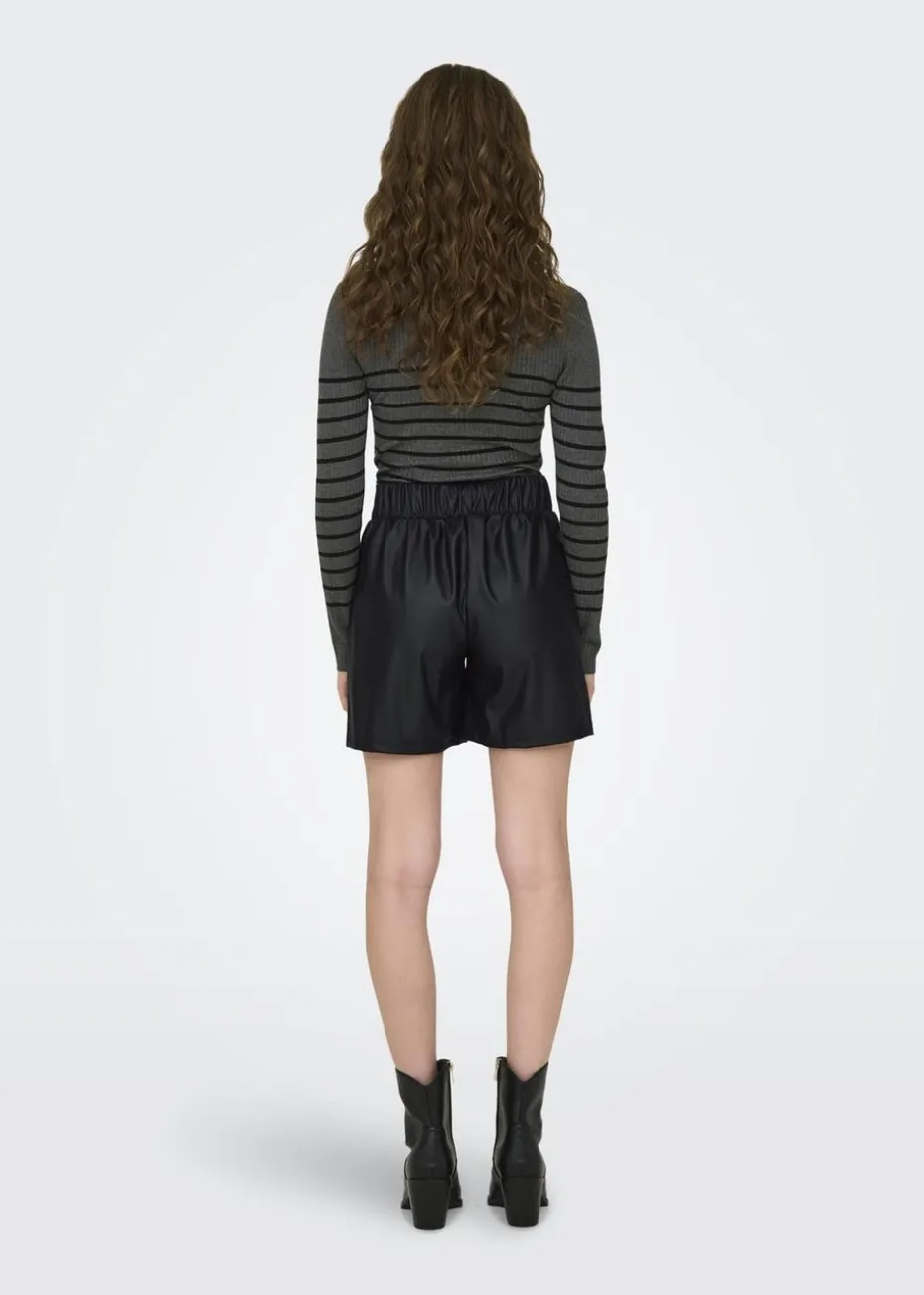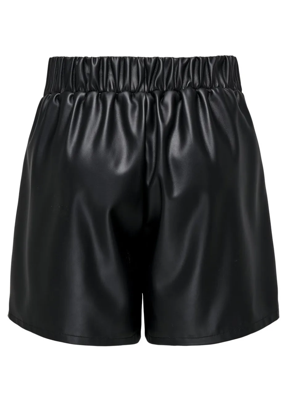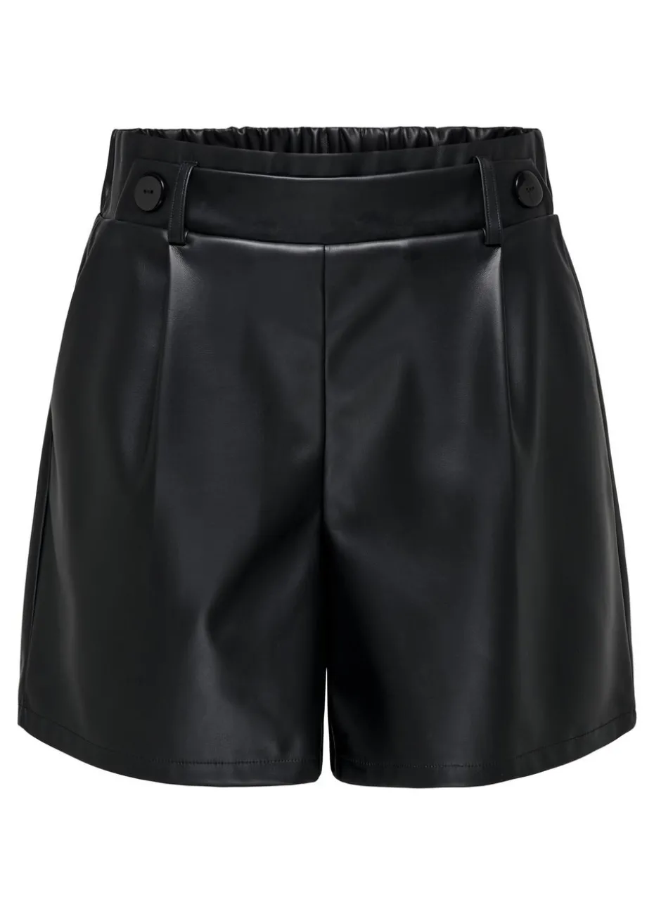 The JDY black leather look shorts are the perfect way to add a touch of edge to your look. These high-waisted shorts are made from luxurious PU material making them look like leather, and feature a flattering tailored fit. Pair them with a tucked-in blouse and heels for a night out, or dress them down with a T-shirt and sneakers for a more casual look.