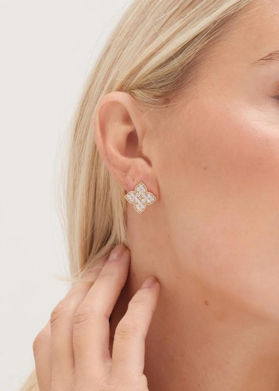 Our Jon Richard Gold Pave Clover Stud Earrings are a classic and timless piece to add to your collection. Featuring a clover design with sparking cubic zirconia stones set in gold plating, they are a perfect way to dress up an outfit. Fastening: 16mm. Width Dimension: 16mm. Length Dimension: 16mm.
