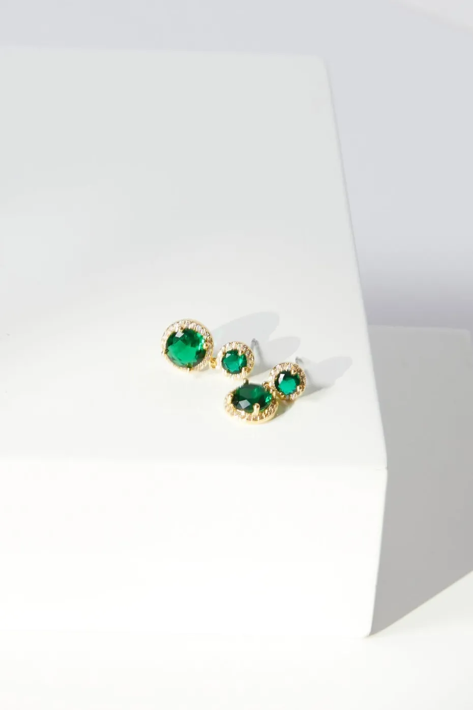 Jon Richard Gold Plated & Emerald Double Halo Earrings
