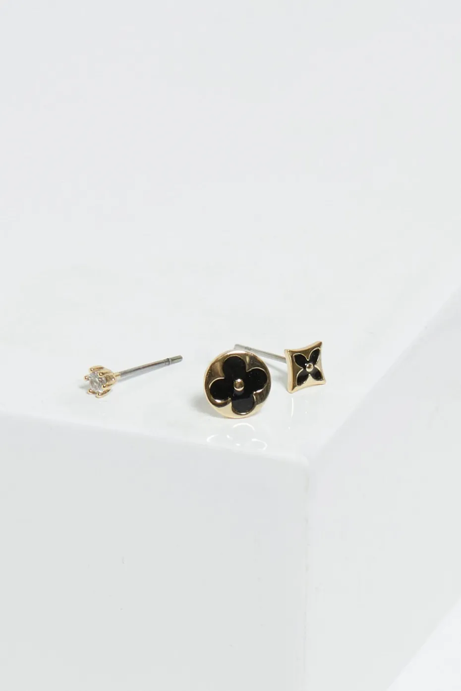 Jon Richard Gold Plated & Jet Enamel Earrings Pack Of 3