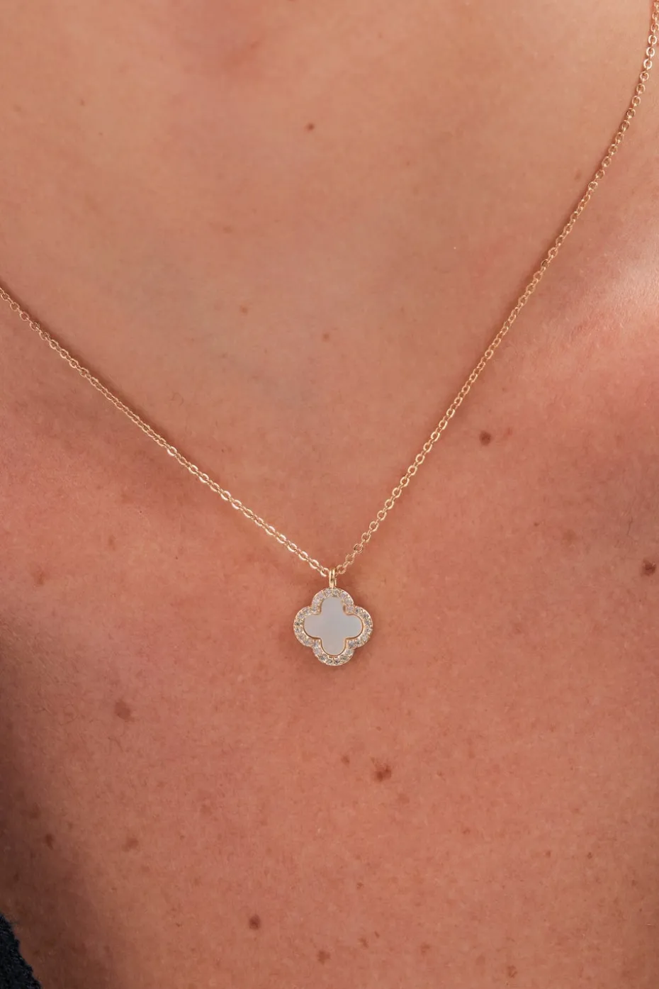 Jon Richard Gold Plated & Mother of Pearl Clover Pendant Necklace