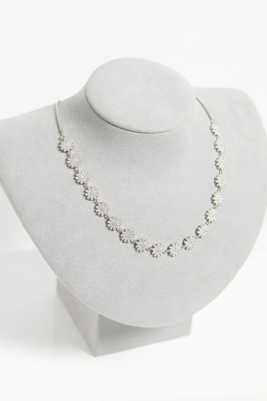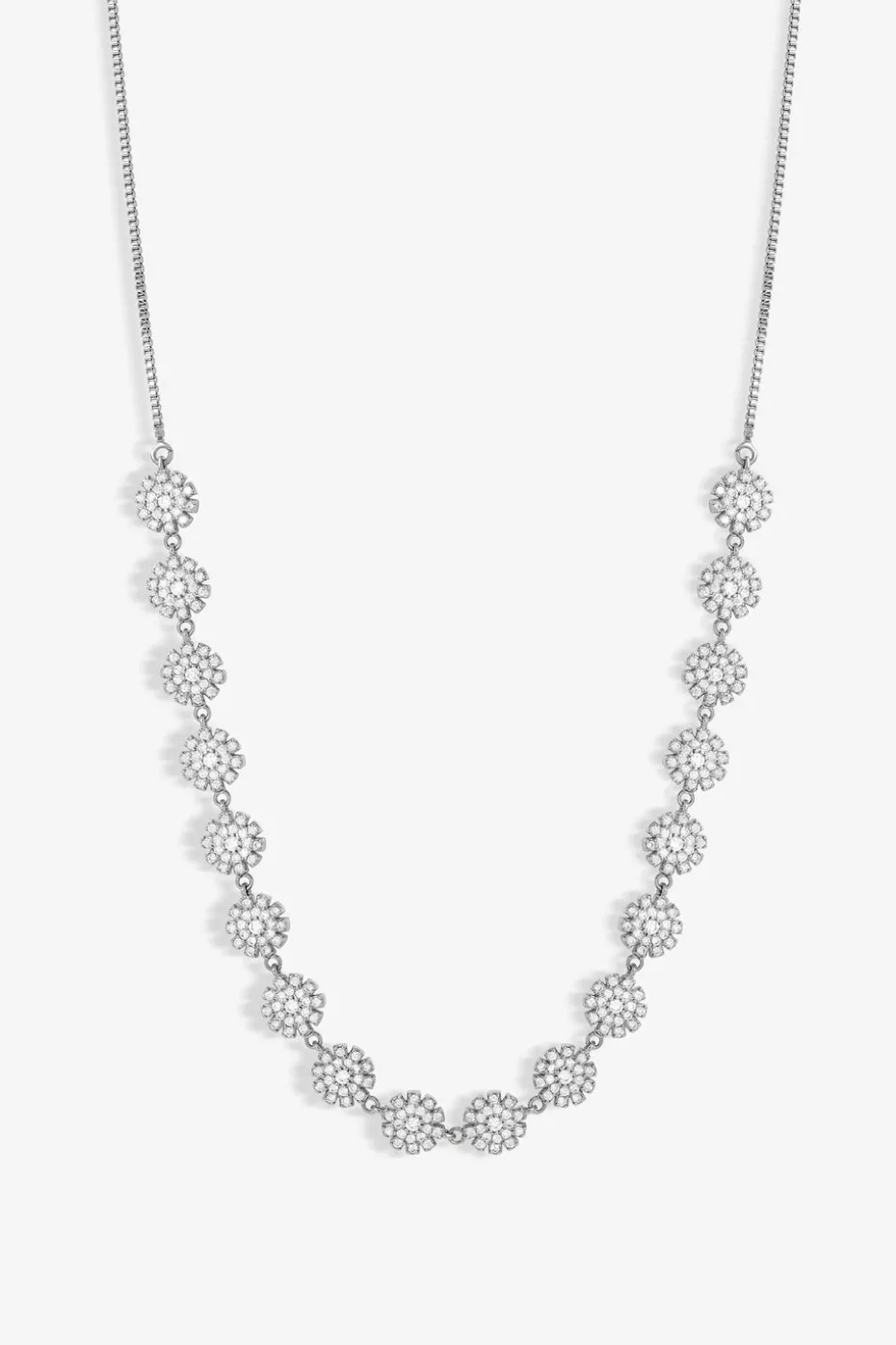 Jon Richard Rhodium Plated Cubic Zirconia Mini Flower Adjustable Necklace