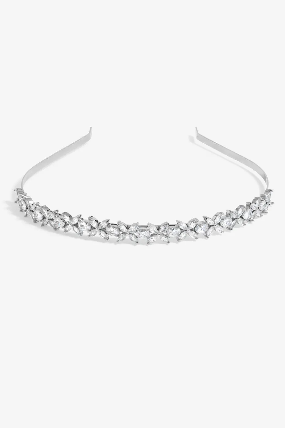 Jon Richard Silver Plated Crystal Floral Single Row Headband