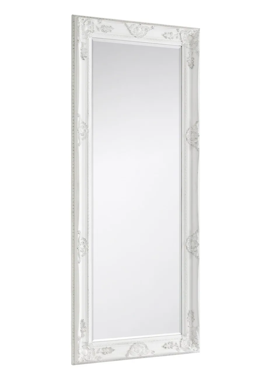The Palais white lean-to dress mirror combines beautiful decorative detailing with a timeless white antique finish to provide a stylish focal point for any room.